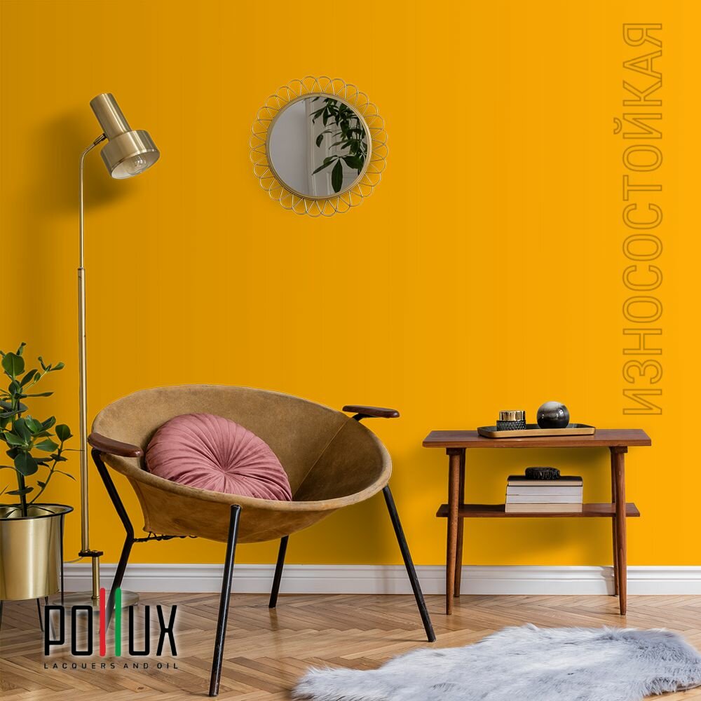 Краска моющаяся интерьерная для стен и потолков, Pollux INTERIOR без запаха, быстросохнущая, акриловая, матовое покрытие, цвет NCS S 6030-Y20R, 1л.