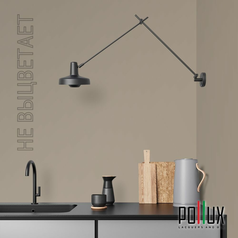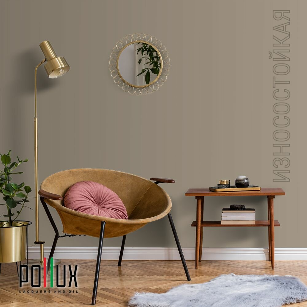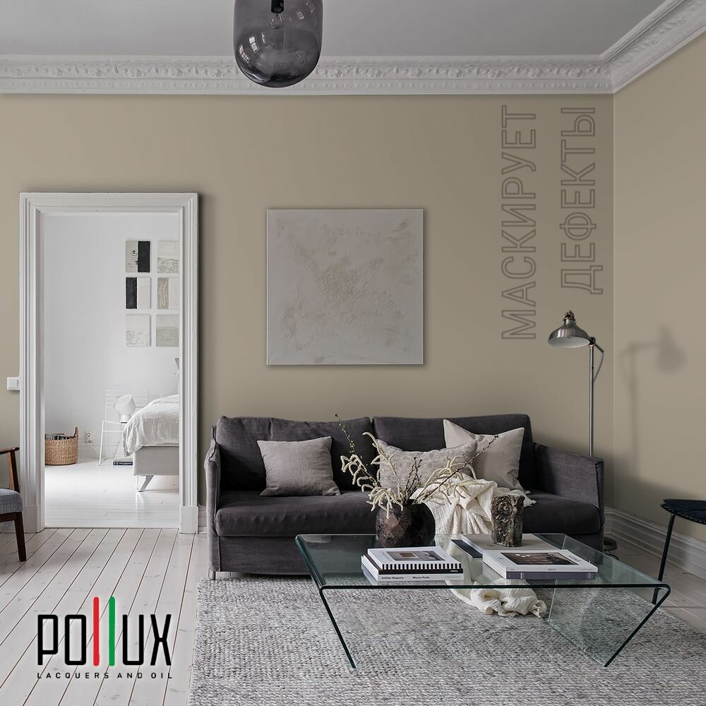 Краска моющаяся интерьерная для стен и потолков, Pollux INTERIOR без запаха, быстросохнущая, акриловая, матовое покрытие, цвет NCS S 7020-Y20R, 1л.
