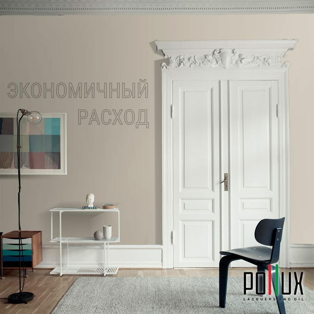 Краска моющаяся интерьерная для стен и потолков, Pollux INTERIOR без запаха, быстросохнущая, акриловая, матовое покрытие, цвет NCS S 7005-Y20R, 1л.
