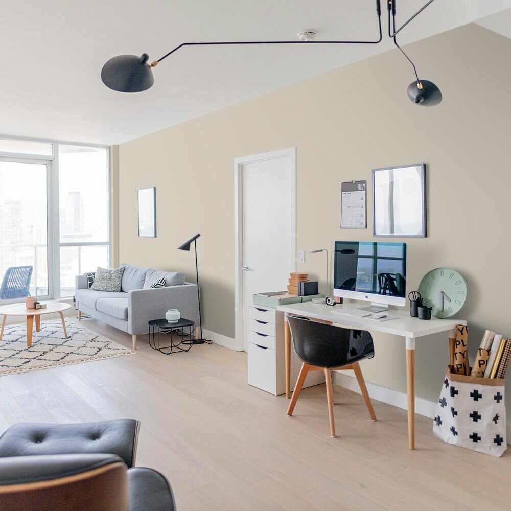 Краска моющаяся интерьерная для стен и потолков, Pollux INTERIOR без запаха, быстросохнущая, акриловая, матовое покрытие, цвет NCS S 0510-Y20R, 1л.