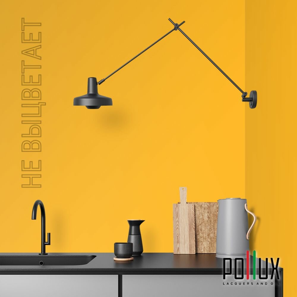 Краска моющаяся интерьерная для стен и потолков, Pollux INTERIOR без запаха, быстросохнущая, акриловая, матовое покрытие, цвет NCS S 6030-Y20R, 1л.