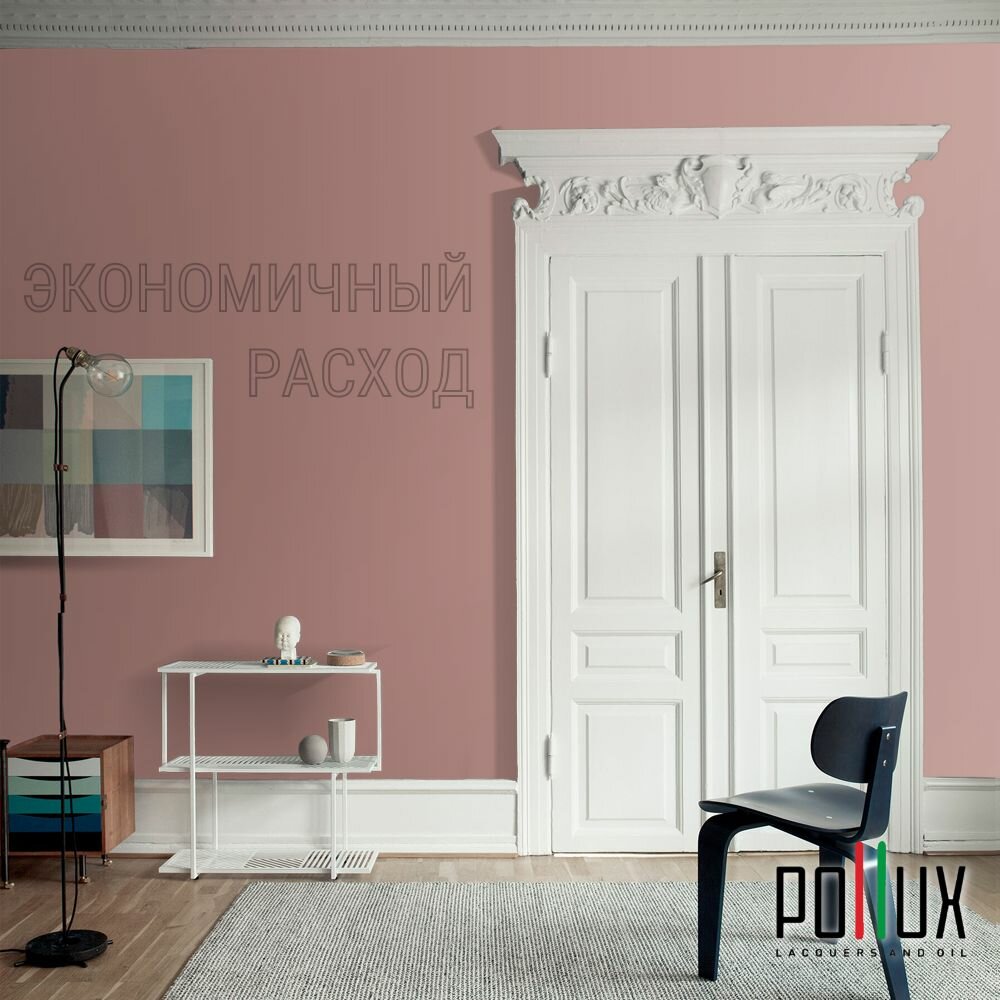 Краска моющаяся интерьерная для стен и потолков, Pollux INTERIOR без запаха, быстросохнущая, акриловая, матовое покрытие, цвет NCS S 3030-Y90R, 1л.