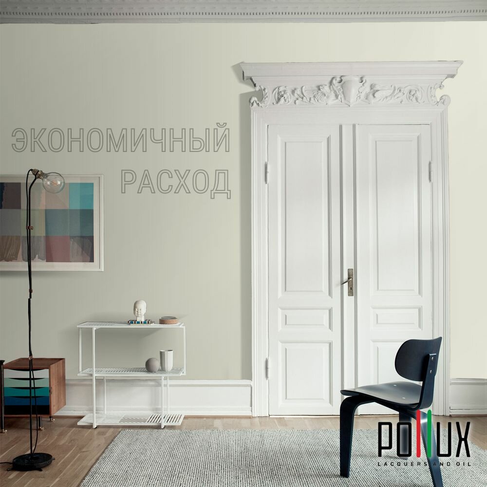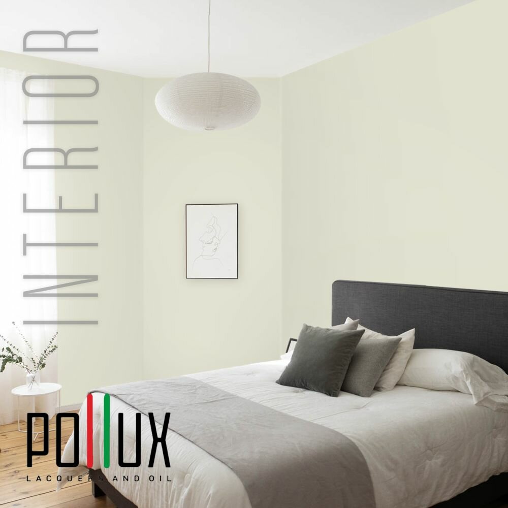 Краска моющаяся интерьерная для стен и потолков, Pollux INTERIOR без запаха, быстросохнущая, акриловая, матовое покрытие, цвет NCS S 0603-G80Y, 1л.