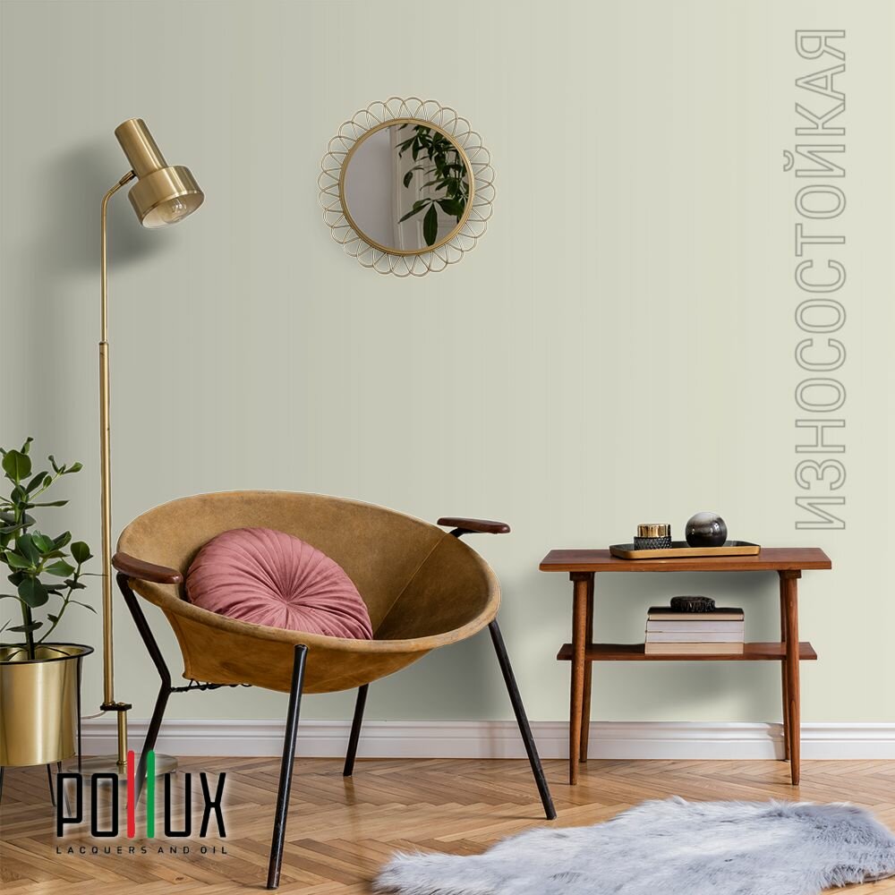 Краска моющаяся интерьерная для стен и потолков, Pollux INTERIOR без запаха, быстросохнущая, акриловая, матовое покрытие, цвет NCS S 1015-G80Y, 1л.