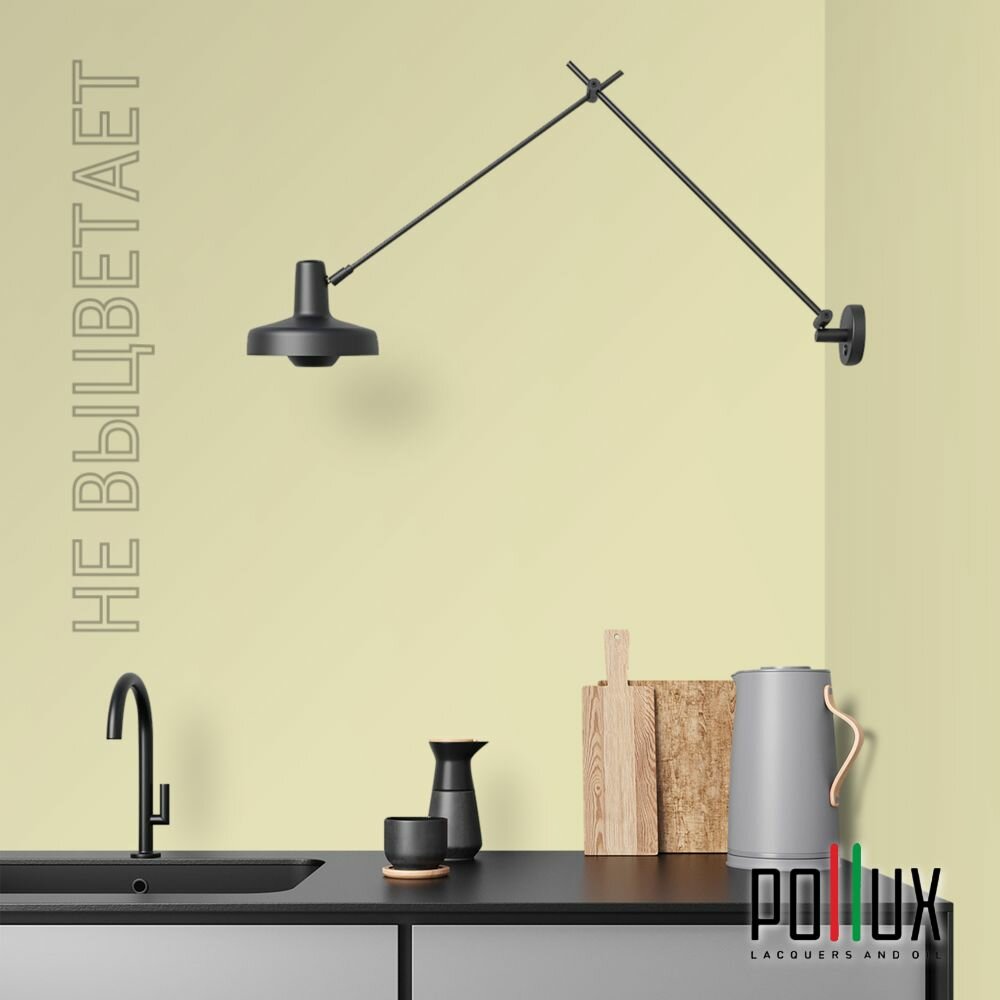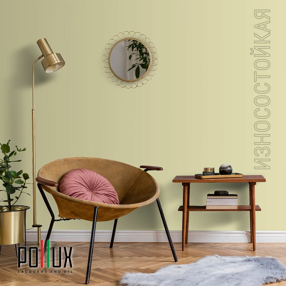 Краска моющаяся интерьерная для стен и потолков, Pollux INTERIOR без запаха, быстросохнущая, акриловая, матовое покрытие, цвет NCS S 0520-G80Y, 1л.
