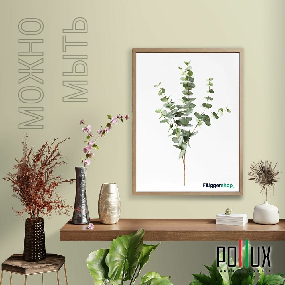 Краска моющаяся интерьерная для стен и потолков, Pollux INTERIOR без запаха, быстросохнущая, акриловая, матовое покрытие, цвет NCS S 8005-G80Y, 1л.