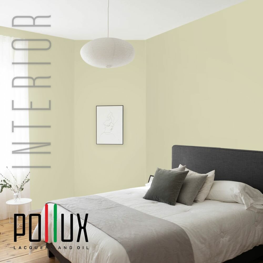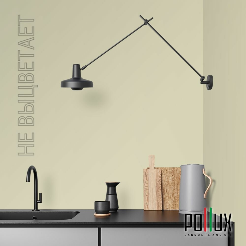 Краска моющаяся интерьерная для стен и потолков, Pollux INTERIOR без запаха, быстросохнущая, акриловая, матовое покрытие, цвет NCS S 0510-G80Y, 1л.