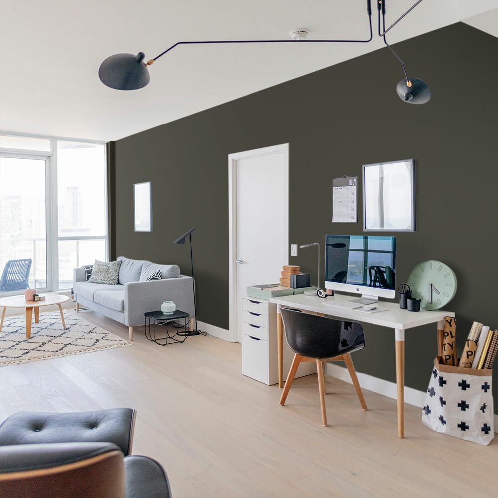 Краска моющаяся интерьерная для стен и потолков, Pollux INTERIOR без запаха, быстросохнущая, акриловая, матовое покрытие, цвет NCS S 3060-G80Y, 1л.