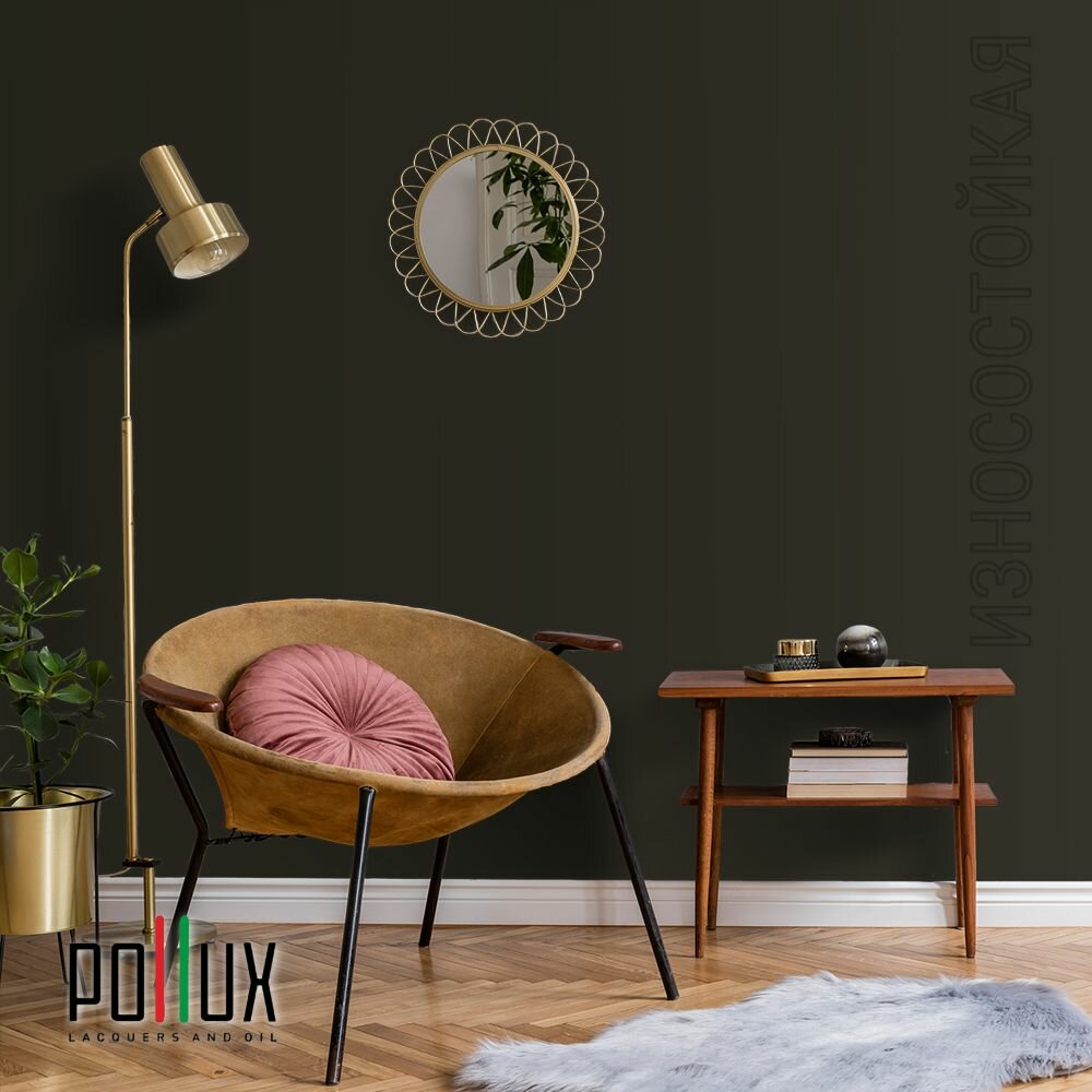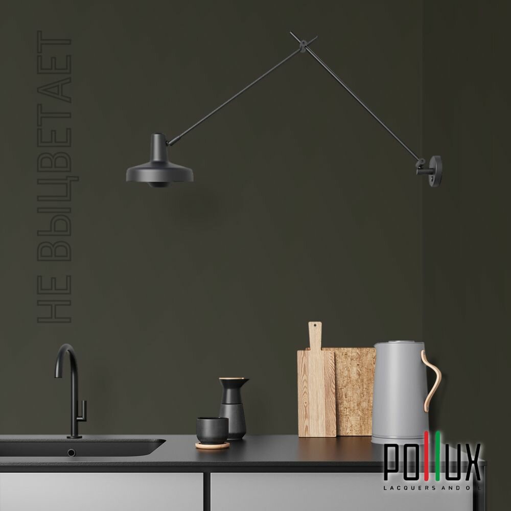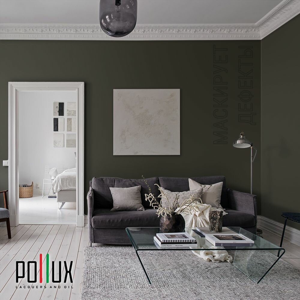 Краска моющаяся интерьерная для стен и потолков, Pollux INTERIOR без запаха, быстросохнущая, акриловая, матовое покрытие, цвет NCS S 3030-G80Y, 1л.