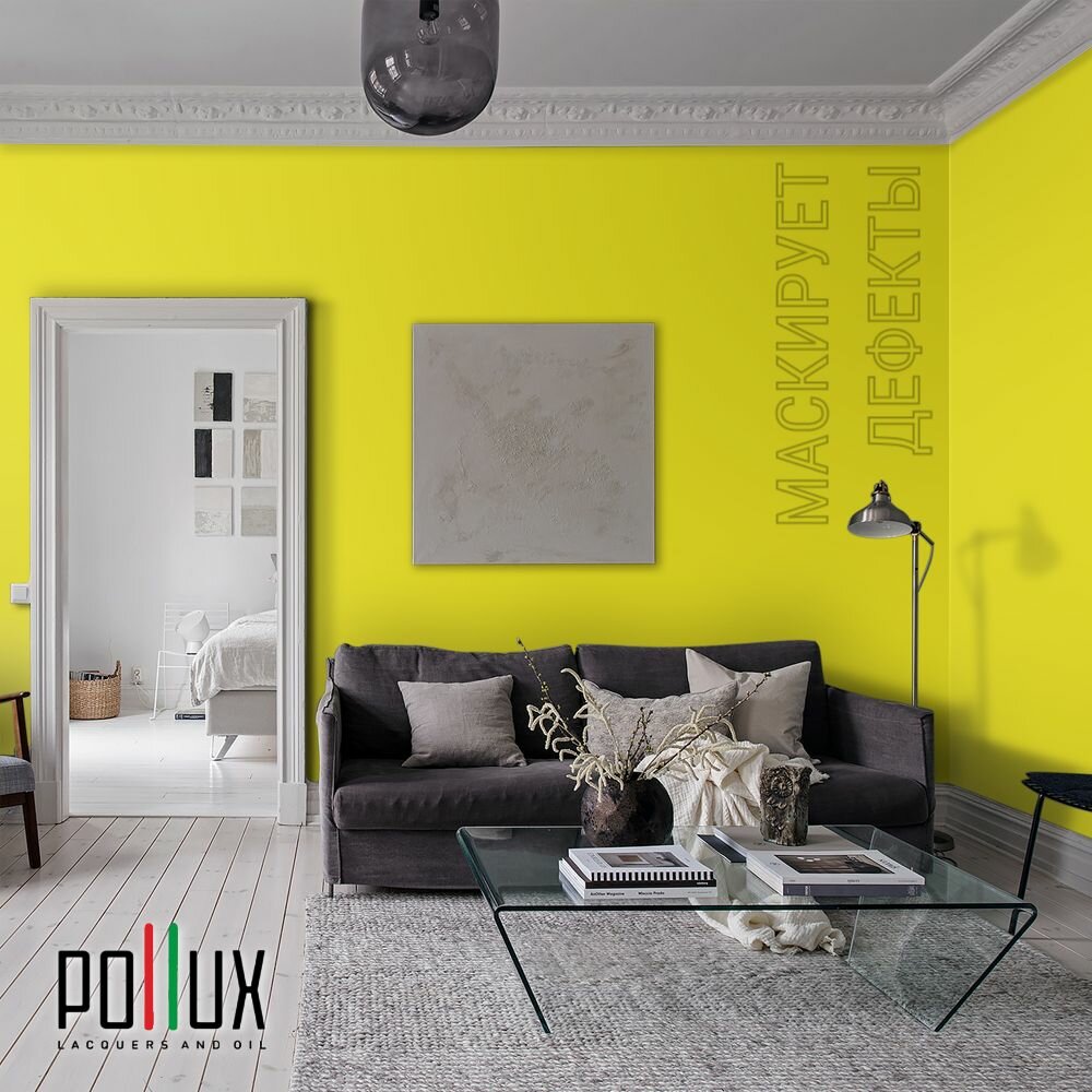 Краска моющаяся интерьерная для стен и потолков, Pollux INTERIOR без запаха, быстросохнущая, акриловая, матовое покрытие, цвет NCS S 0565-G50Y, 1л.