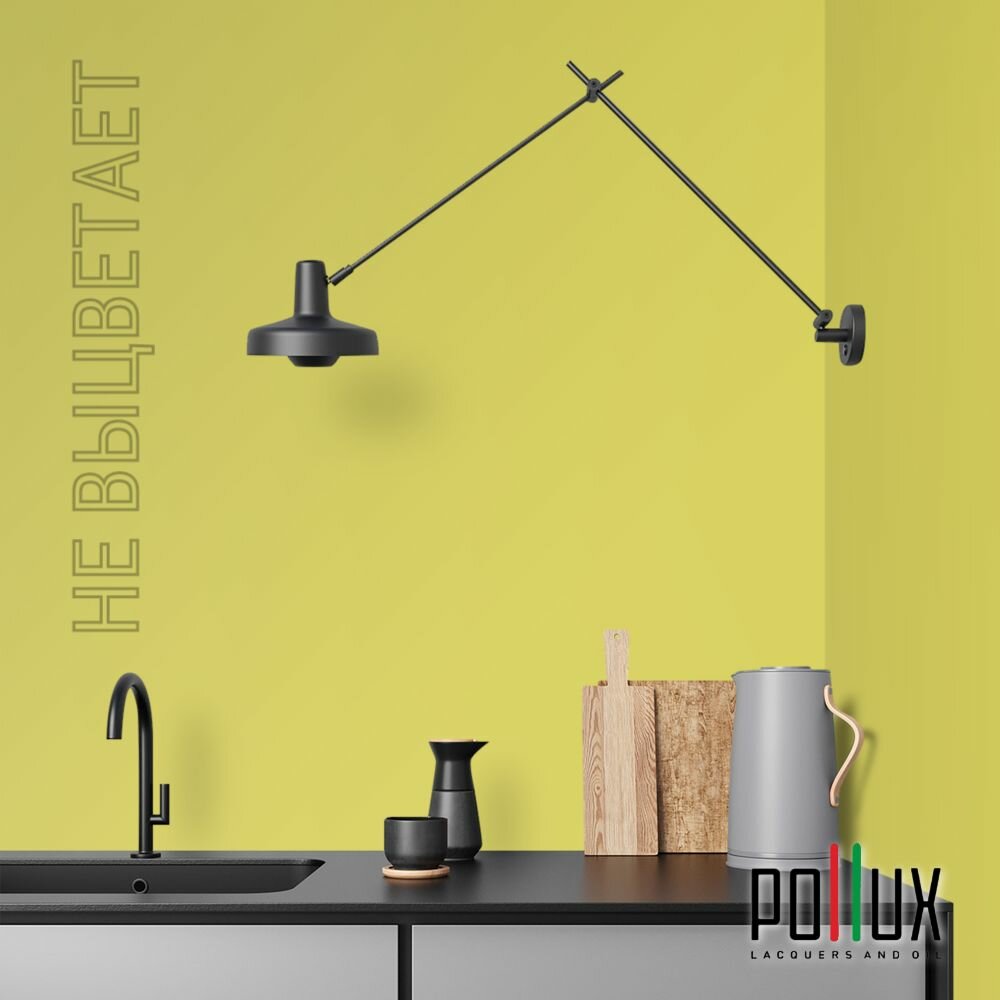 Краска моющаяся интерьерная для стен и потолков, Pollux INTERIOR без запаха, быстросохнущая, акриловая, матовое покрытие, цвет NCS S 0520-G80Y, 1л.