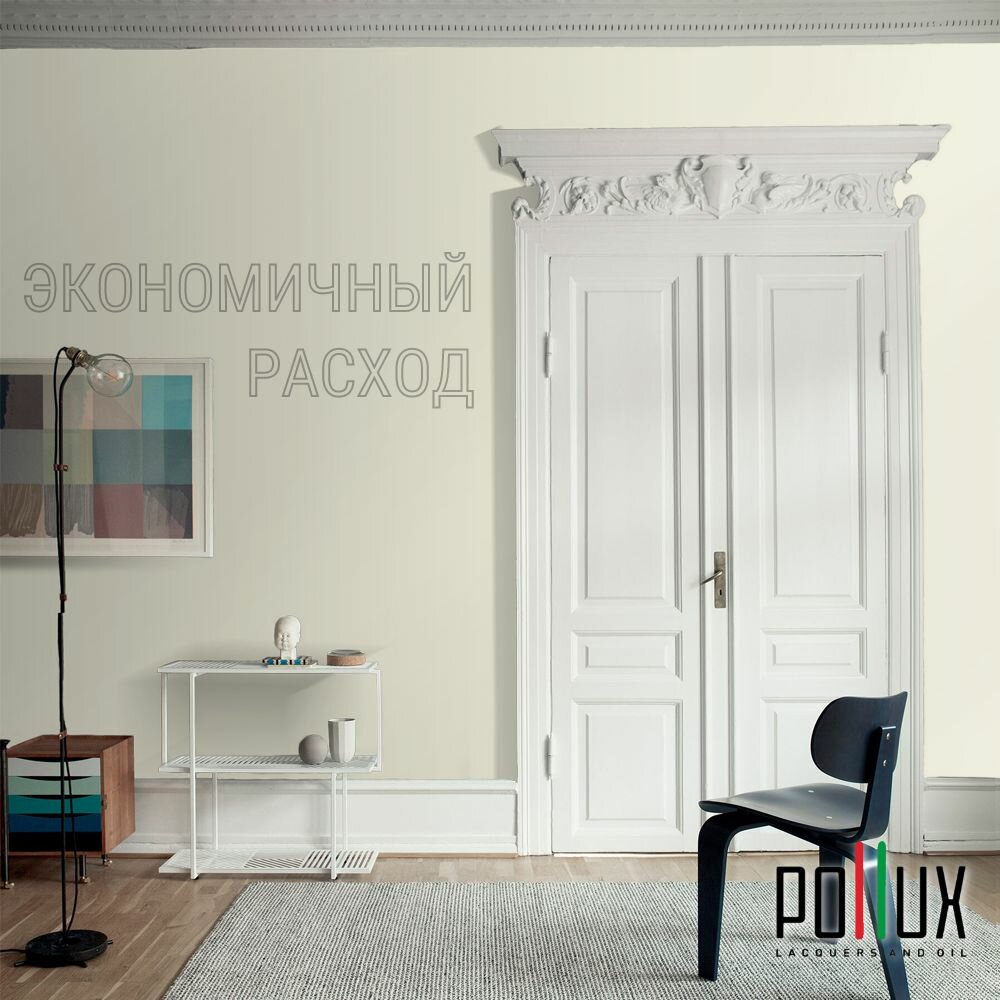 Краска моющаяся интерьерная для стен и потолков, Pollux INTERIOR без запаха, быстросохнущая, акриловая, матовое покрытие, цвет NCS S 0603-G80Y, 1л.