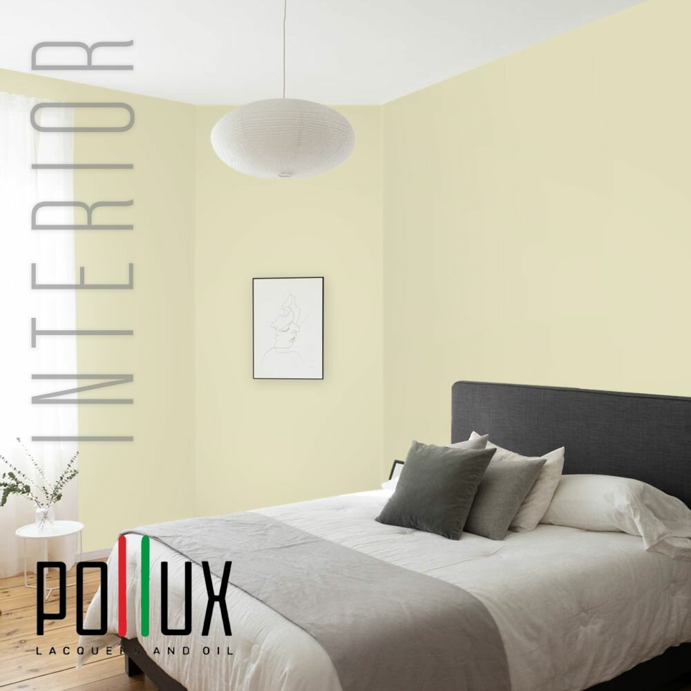 Краска моющаяся интерьерная для стен и потолков, Pollux INTERIOR без запаха, быстросохнущая, акриловая, матовое покрытие, цвет NCS S 0520-G80Y, 1л.