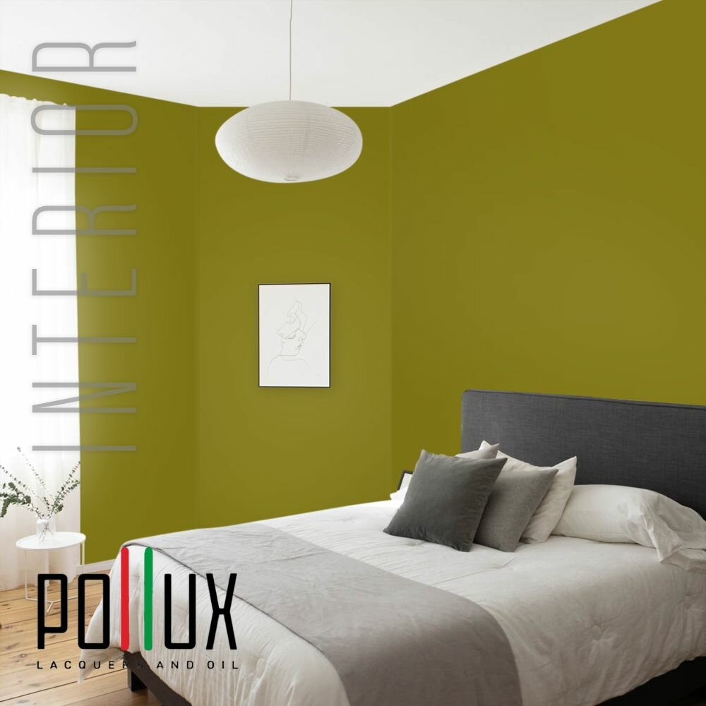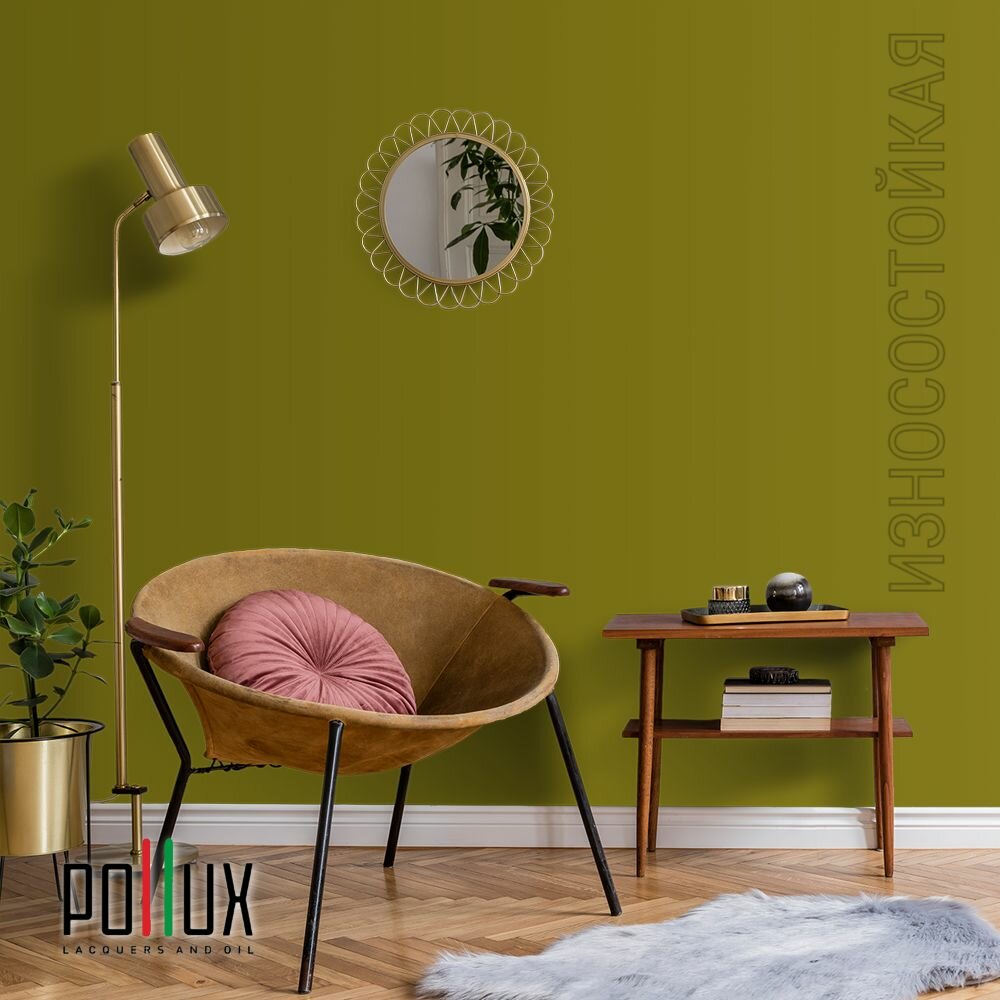 Краска моющаяся интерьерная для стен и потолков, Pollux INTERIOR без запаха, быстросохнущая, акриловая, матовое покрытие, цвет NCS S 1060-G80Y, 1л.