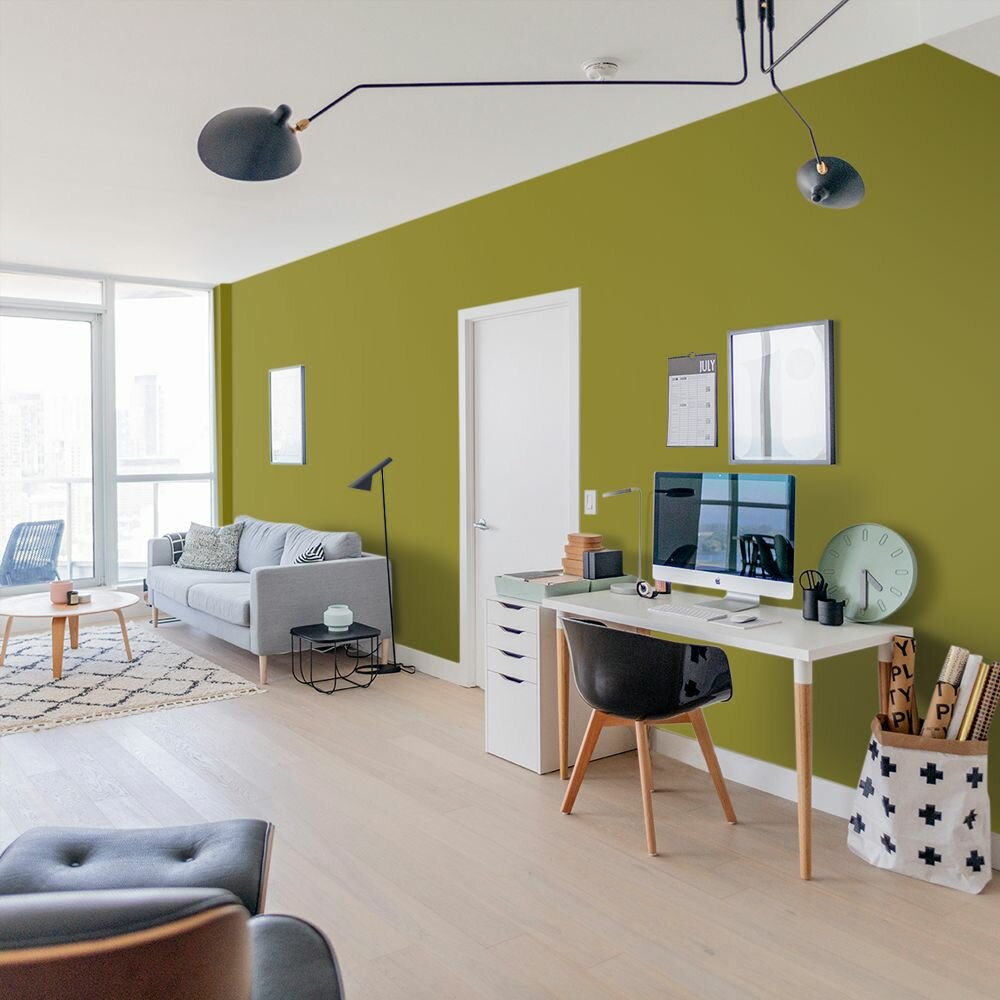 Краска моющаяся интерьерная для стен и потолков, Pollux INTERIOR без запаха, быстросохнущая, акриловая, матовое покрытие, цвет NCS S 0570-G80Y, 1л.