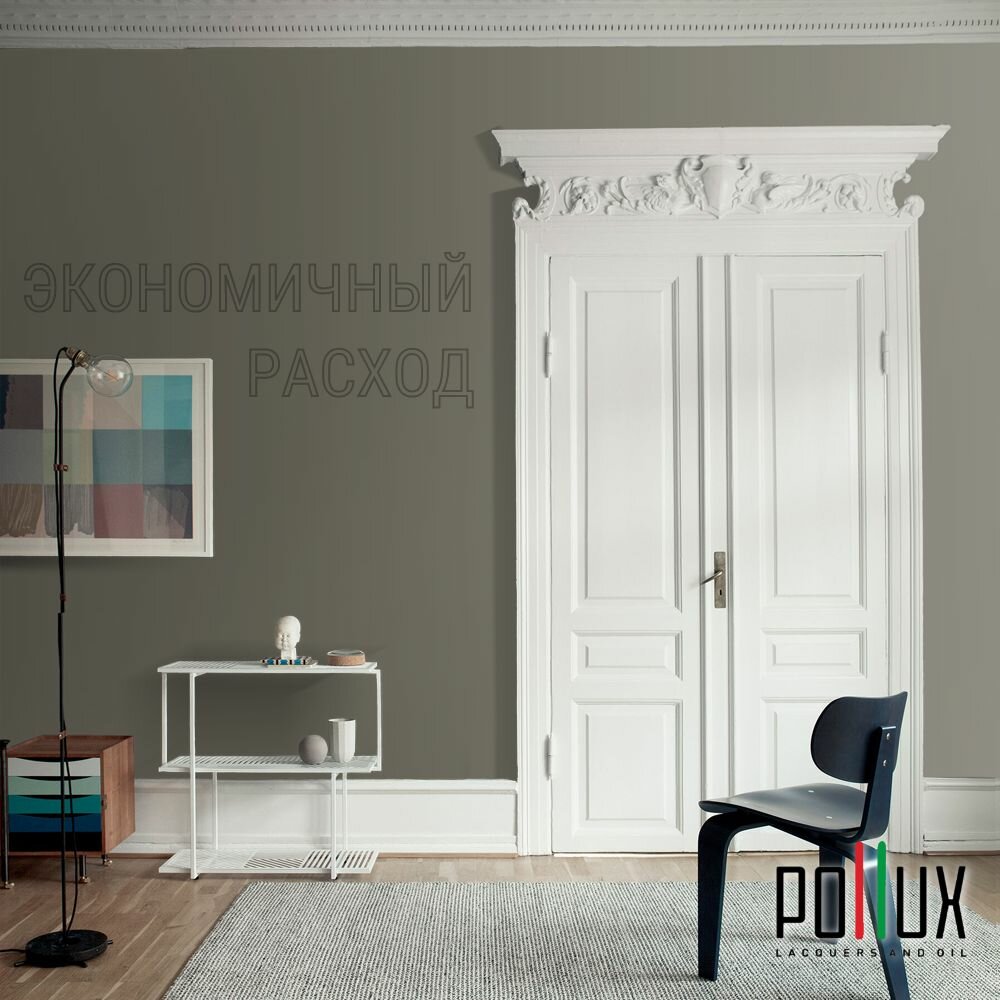 Краска моющаяся интерьерная для стен и потолков, Pollux INTERIOR без запаха, быстросохнущая, акриловая, матовое покрытие, цвет NCS S 7005-G80Y, 1л.
