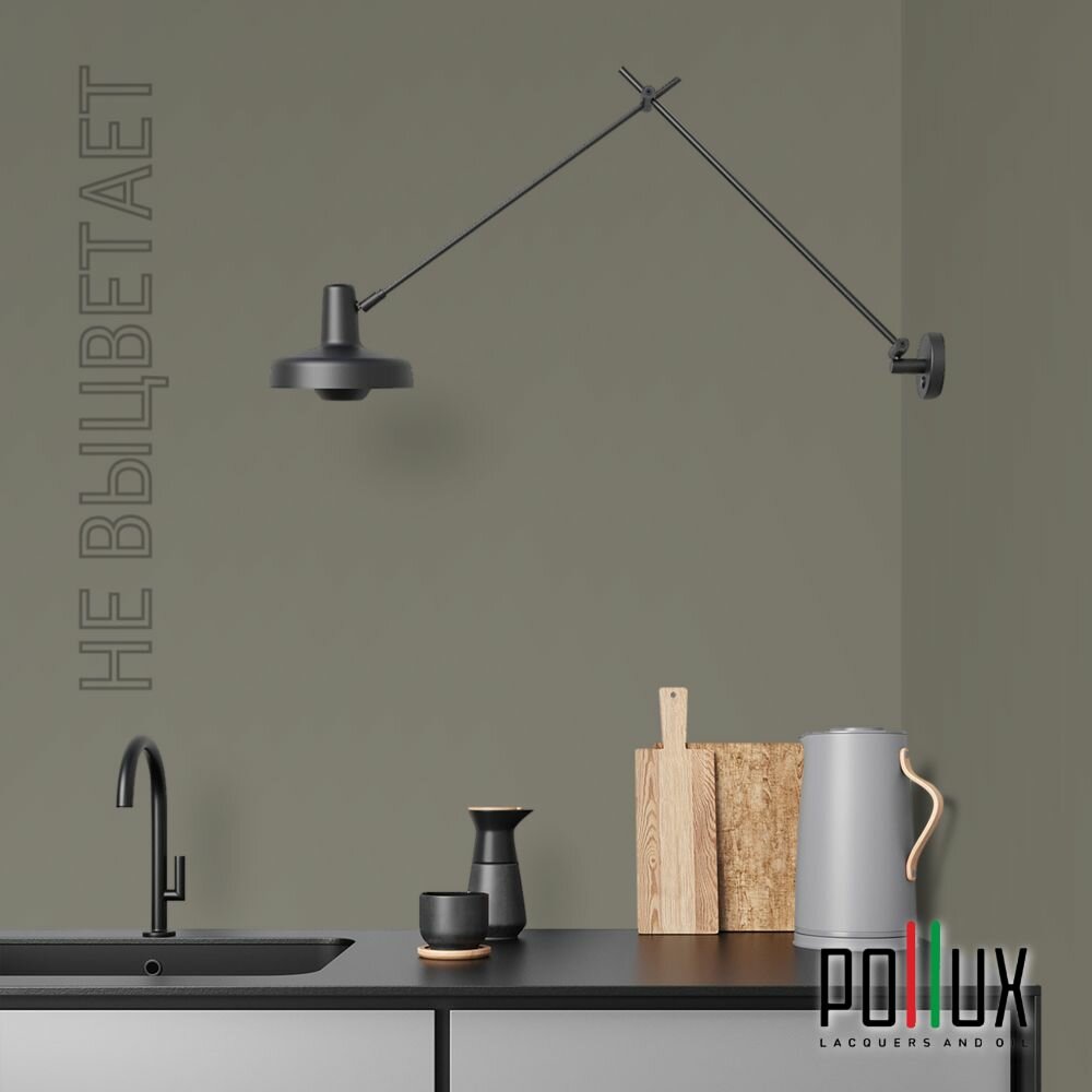 Краска моющаяся интерьерная для стен и потолков, Pollux INTERIOR без запаха, быстросохнущая, акриловая, матовое покрытие, цвет NCS S 3030-G80Y, 1л.