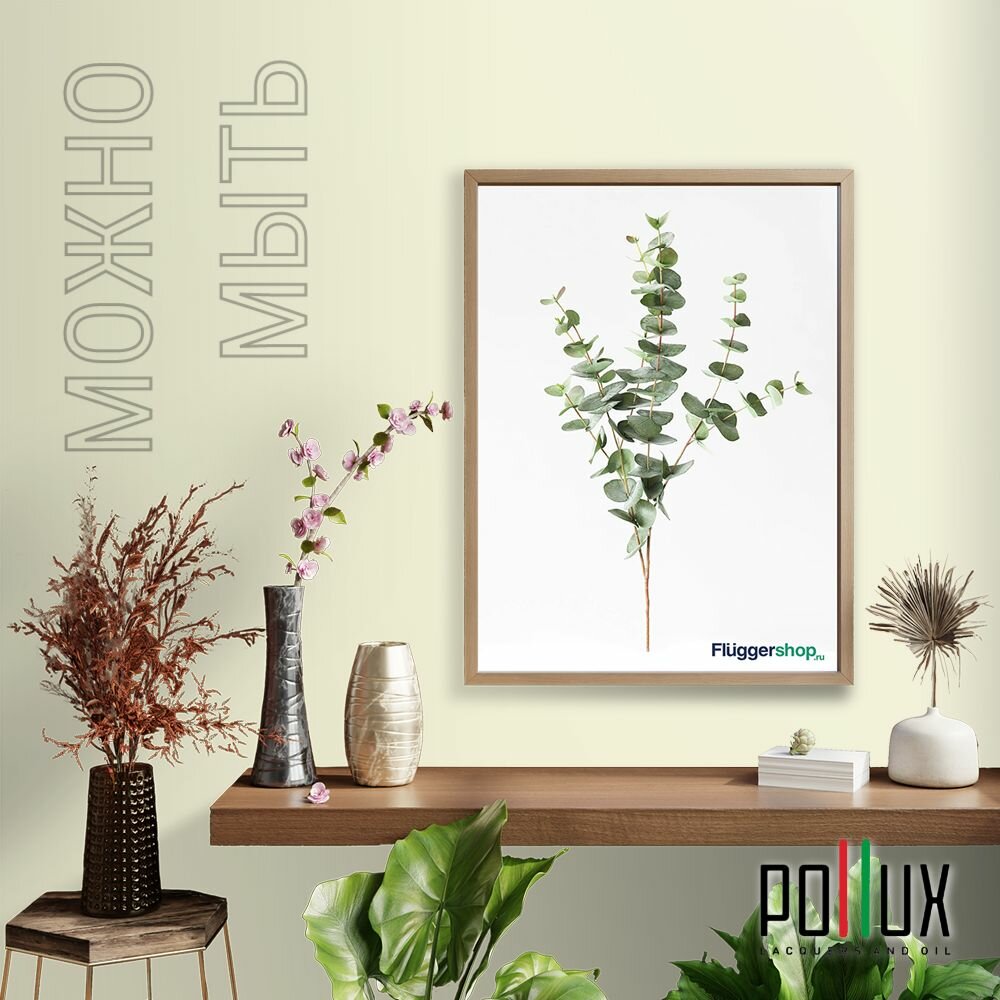Краска моющаяся интерьерная для стен и потолков, Pollux INTERIOR без запаха, быстросохнущая, акриловая, матовое покрытие, цвет NCS S 1070-G80Y, 1л.