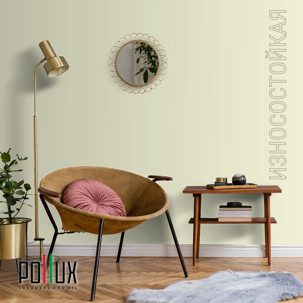 Краска моющаяся интерьерная для стен и потолков, Pollux INTERIOR без запаха, быстросохнущая, акриловая, матовое покрытие, цвет NCS S 0520-G80Y, 1л.