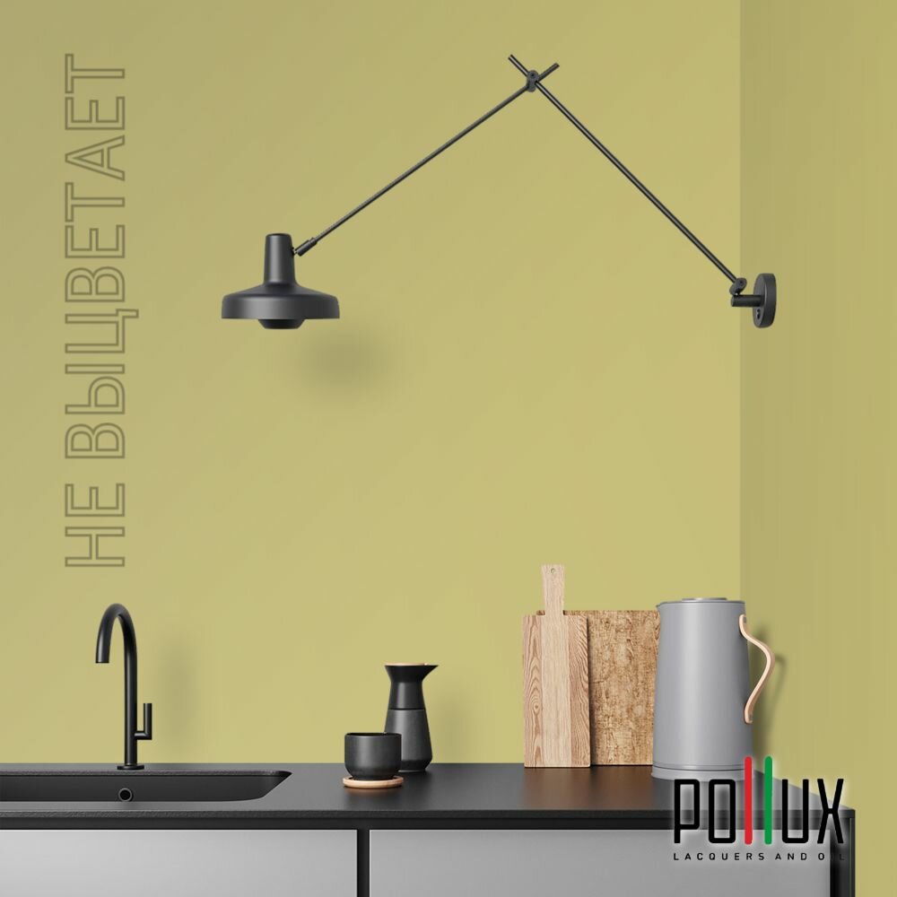Краска моющаяся интерьерная для стен и потолков, Pollux INTERIOR без запаха, быстросохнущая, акриловая, матовое покрытие, цвет NCS S 0520-G80Y, 1л.