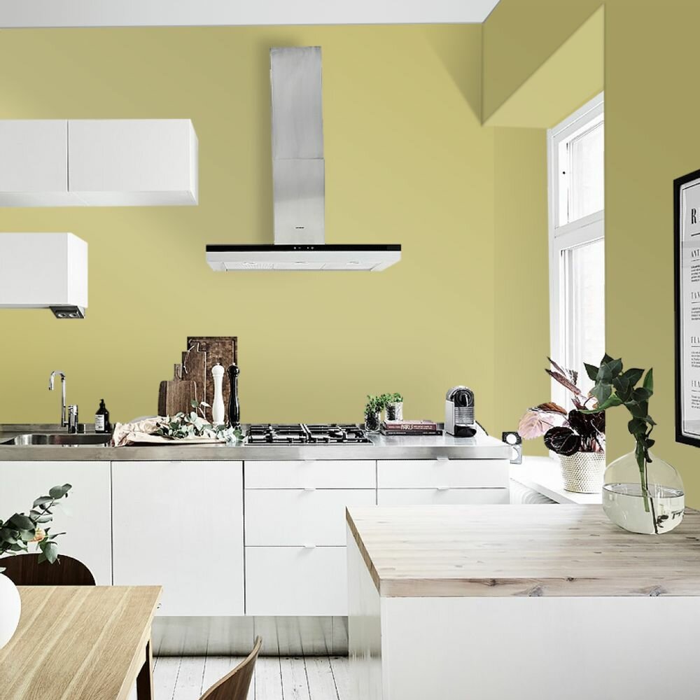 Краска моющаяся интерьерная для стен и потолков, Pollux INTERIOR без запаха, быстросохнущая, акриловая, матовое покрытие, цвет NCS S 1005-G80Y, 1л.