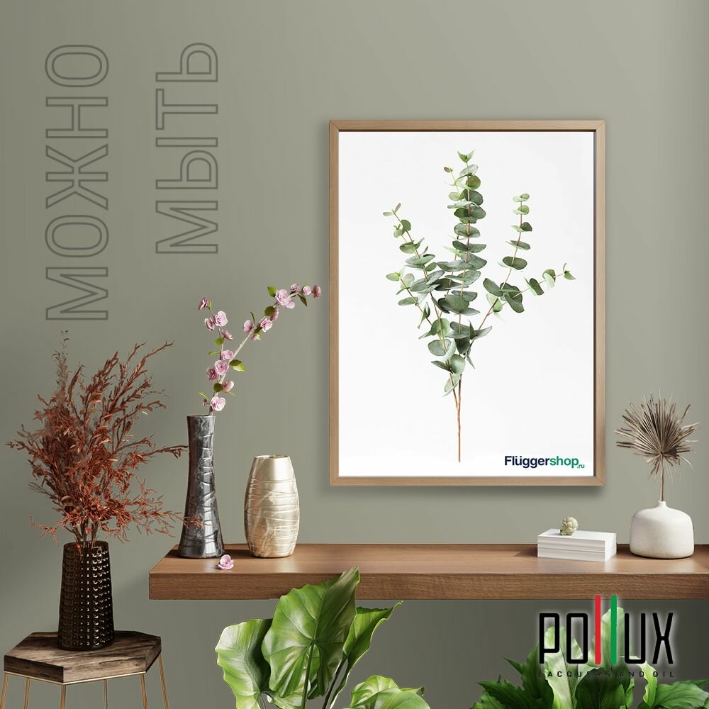 Краска моющаяся интерьерная для стен и потолков, Pollux INTERIOR без запаха, быстросохнущая, акриловая, матовое покрытие, цвет NCS S 4050-G80Y, 1л.
