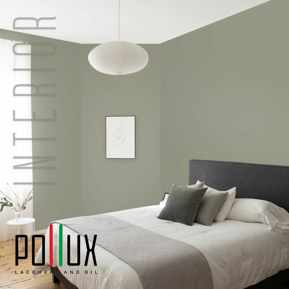 Краска моющаяся интерьерная для стен и потолков, Pollux INTERIOR без запаха, быстросохнущая, акриловая, матовое покрытие, цвет NCS S 3030-G80Y, 1л.