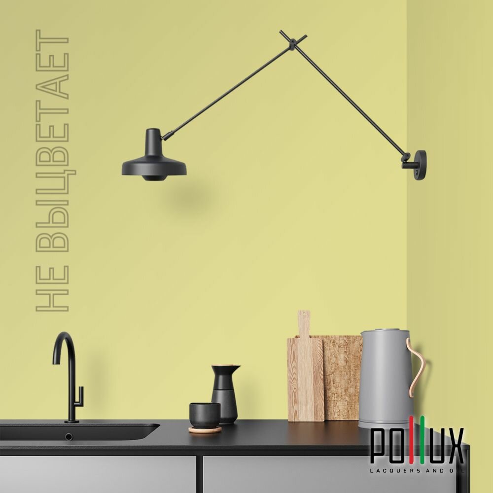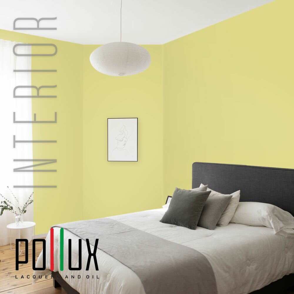 Краска моющаяся интерьерная для стен и потолков, Pollux INTERIOR без запаха, быстросохнущая, акриловая, матовое покрытие, цвет NCS S 0520-G80Y, 1л.