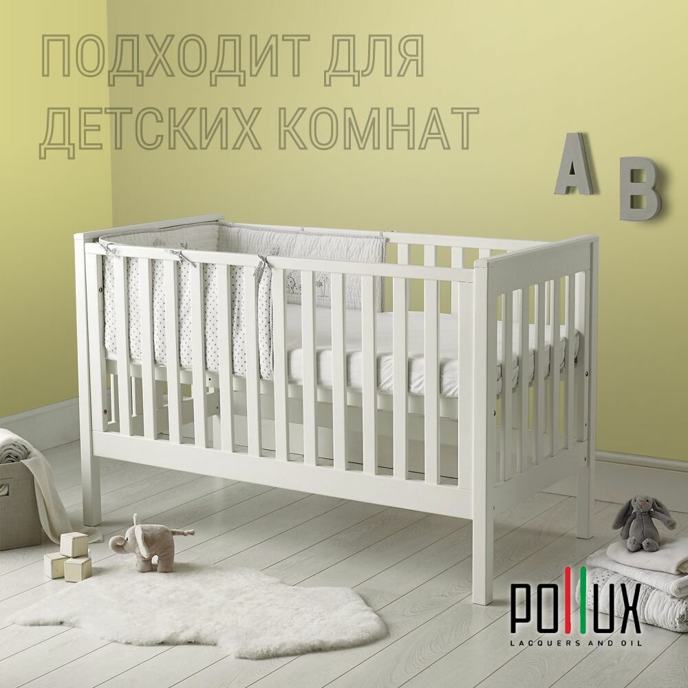 Краска моющаяся интерьерная для стен и потолков, Pollux INTERIOR без запаха, быстросохнущая, акриловая, матовое покрытие, цвет NCS S 0603-G80Y, 1л.