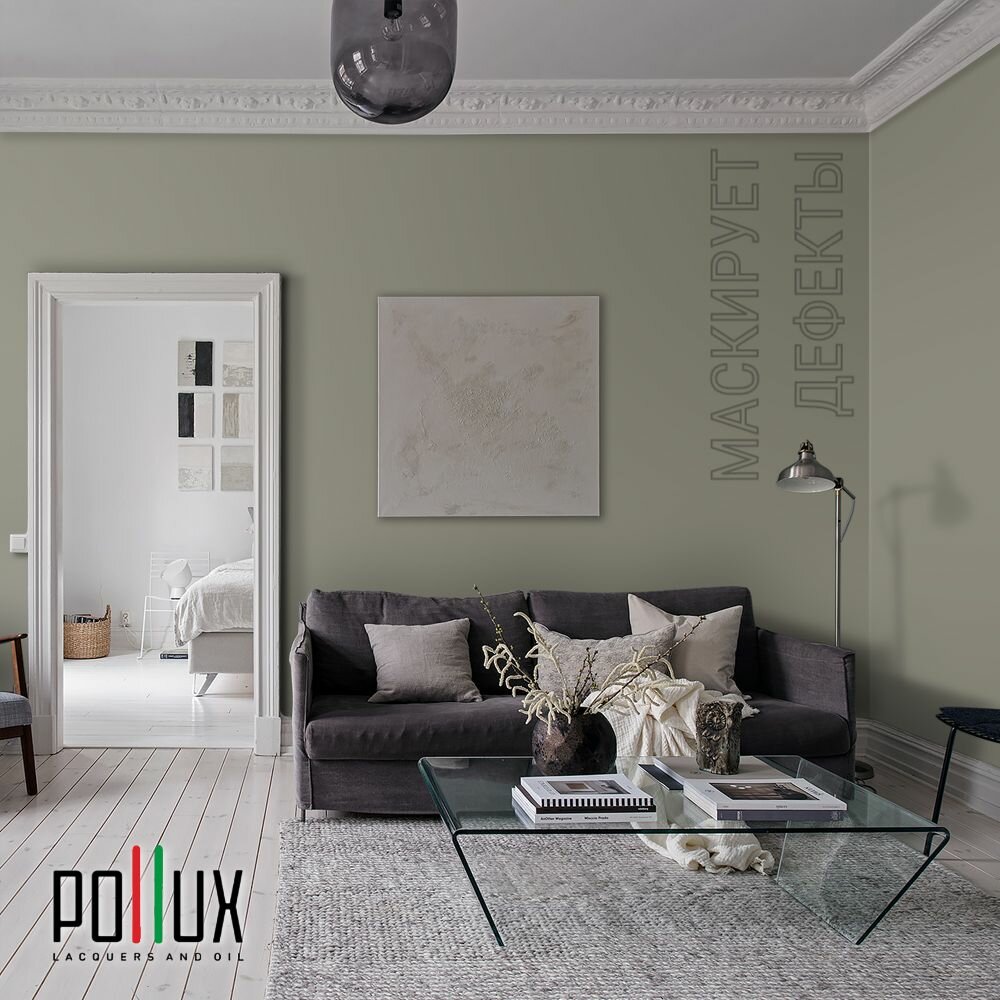 Краска моющаяся интерьерная для стен и потолков, Pollux INTERIOR без запаха, быстросохнущая, акриловая, матовое покрытие, цвет NCS S 2005-G80Y, 1л.
