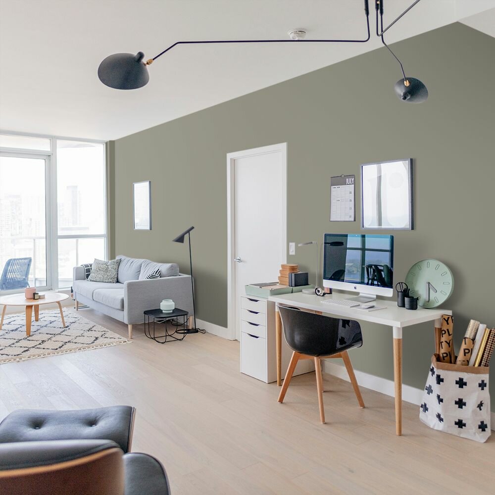 Краска моющаяся интерьерная для стен и потолков, Pollux INTERIOR без запаха, быстросохнущая, акриловая, матовое покрытие, цвет NCS S 4050-G80Y, 1л.