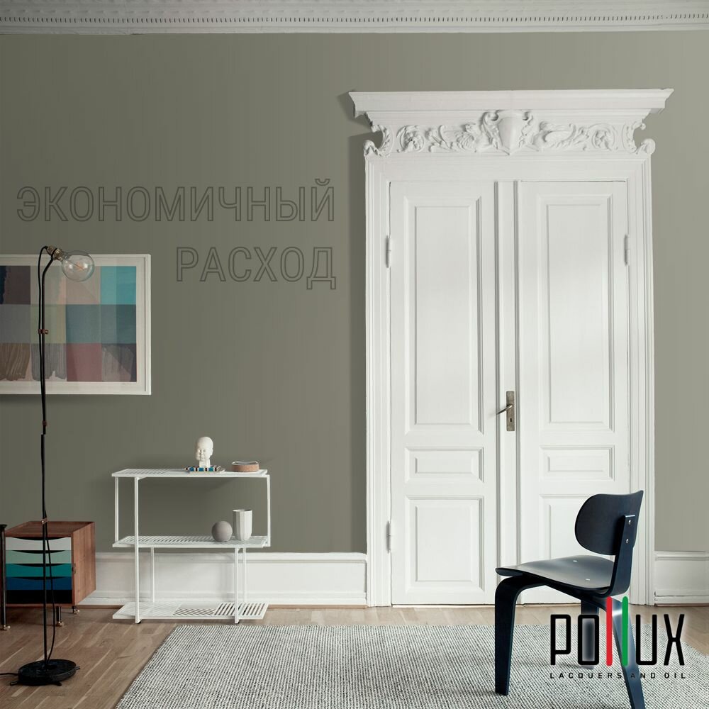 Краска моющаяся интерьерная для стен и потолков, Pollux INTERIOR без запаха, быстросохнущая, акриловая, матовое покрытие, цвет NCS S 7005-G80Y, 1л.