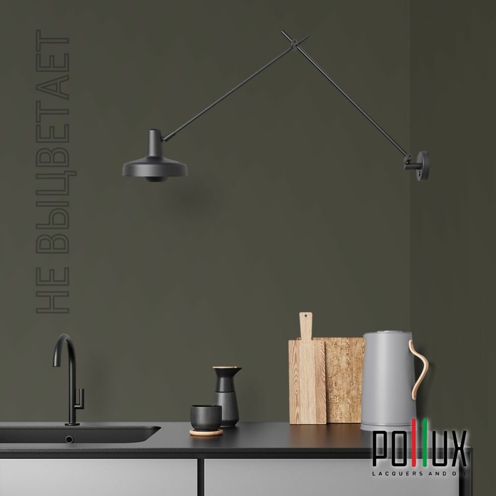 Краска моющаяся интерьерная для стен и потолков, Pollux INTERIOR без запаха, быстросохнущая, акриловая, матовое покрытие, цвет NCS S 8005-G80Y, 1л.