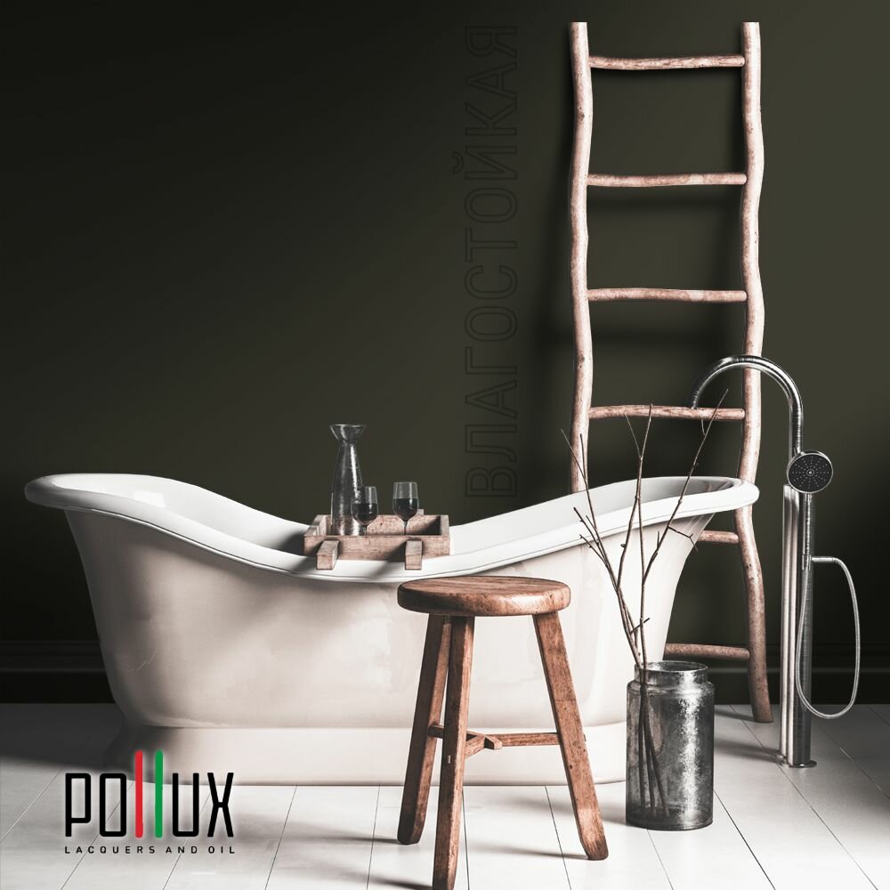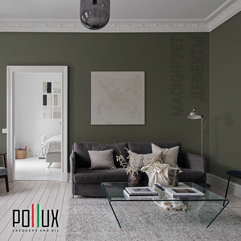 Краска моющаяся интерьерная для стен и потолков, Pollux INTERIOR без запаха, быстросохнущая, акриловая, матовое покрытие, цвет NCS S 3030-G80Y, 1л.