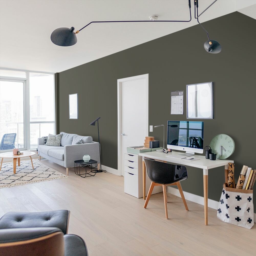 Краска моющаяся интерьерная для стен и потолков, Pollux INTERIOR без запаха, быстросохнущая, акриловая, матовое покрытие, цвет NCS S 3050-G80Y, 1л.