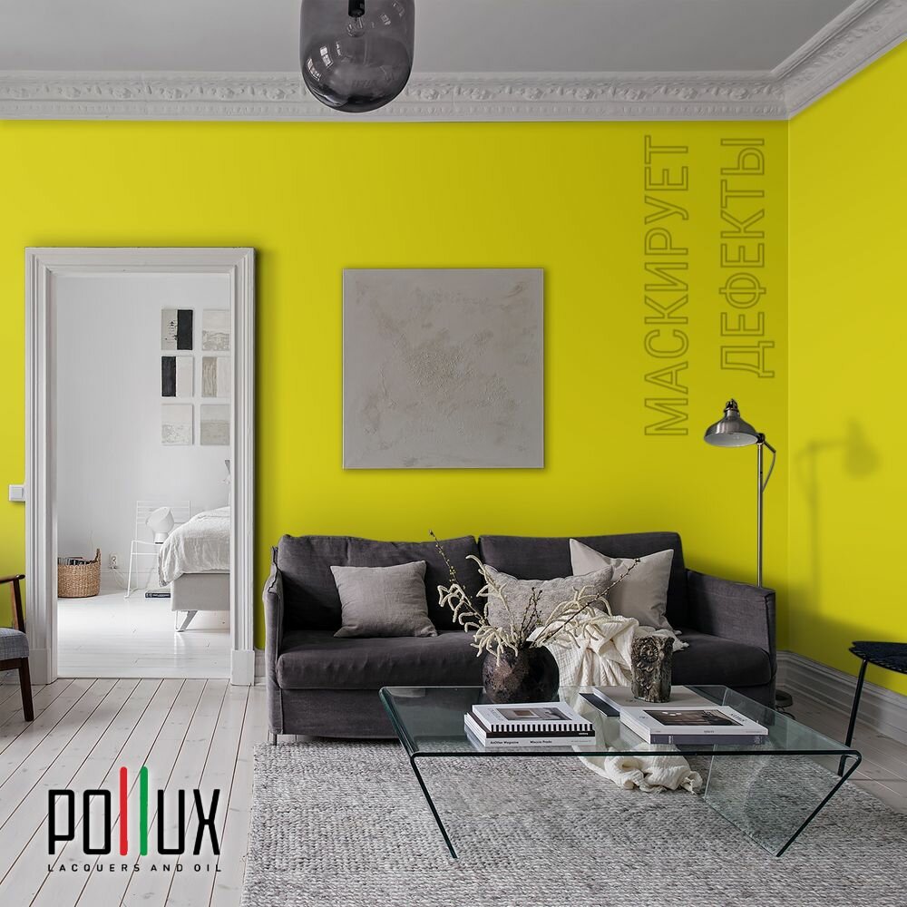 Краска моющаяся интерьерная для стен и потолков, Pollux INTERIOR без запаха, быстросохнущая, акриловая, матовое покрытие, цвет NCS S 1010-G80Y, 1л.