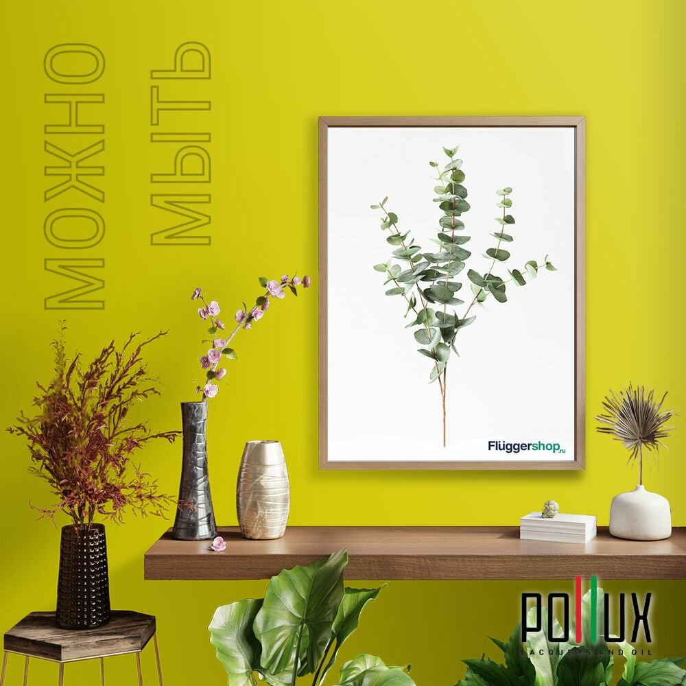 Краска моющаяся интерьерная для стен и потолков, Pollux INTERIOR без запаха, быстросохнущая, акриловая, матовое покрытие, цвет NCS S 1030-G80Y, 1л.
