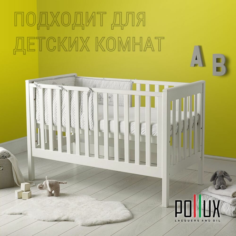 Краска моющаяся интерьерная для стен и потолков, Pollux INTERIOR без запаха, быстросохнущая, акриловая, матовое покрытие, цвет NCS S 0603-G80Y, 1л.