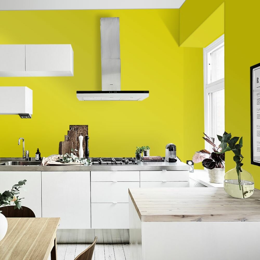 Краска моющаяся интерьерная для стен и потолков, Pollux INTERIOR без запаха, быстросохнущая, акриловая, матовое покрытие, цвет NCS S 0570-G80Y, 1л.