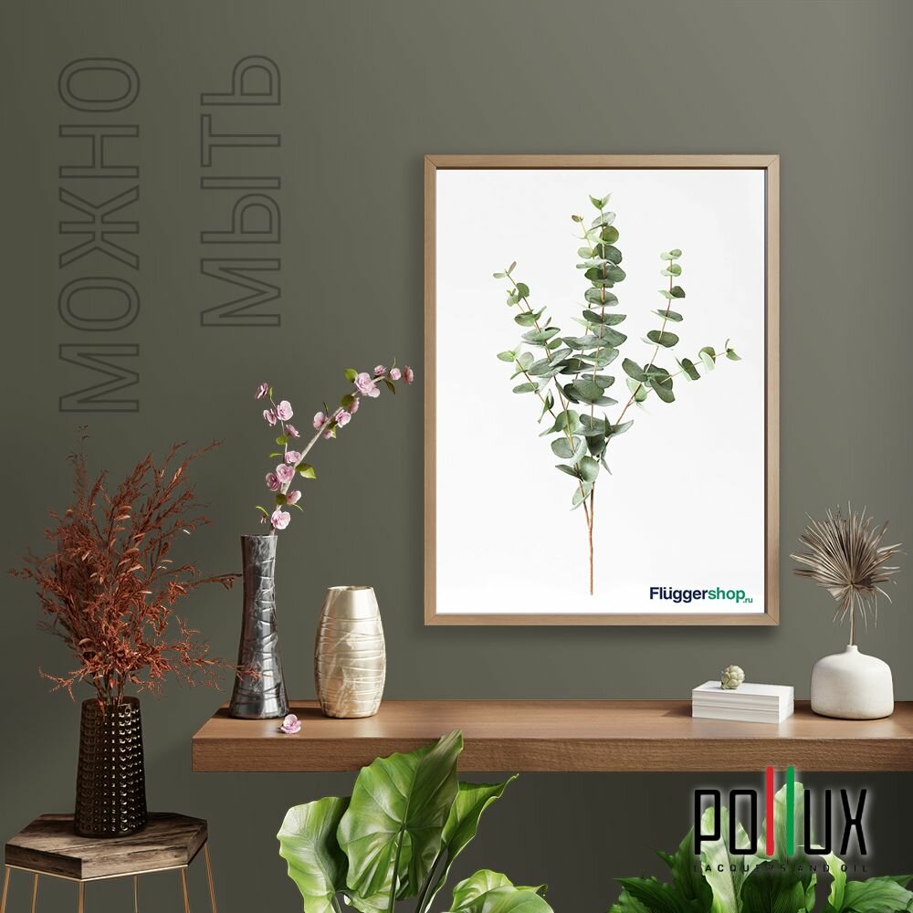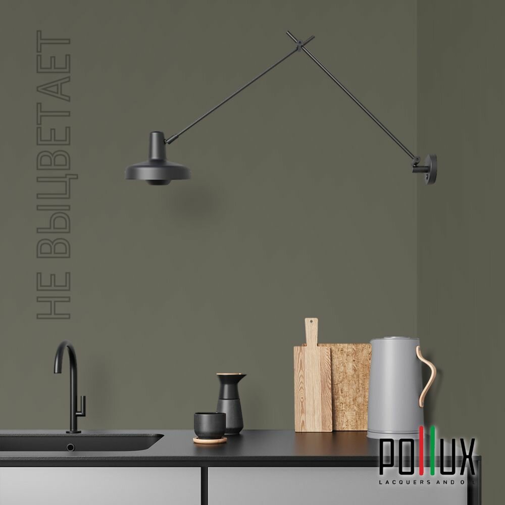 Краска моющаяся интерьерная для стен и потолков, Pollux INTERIOR без запаха, быстросохнущая, акриловая, матовое покрытие, цвет NCS S 8005-G80Y, 1л.