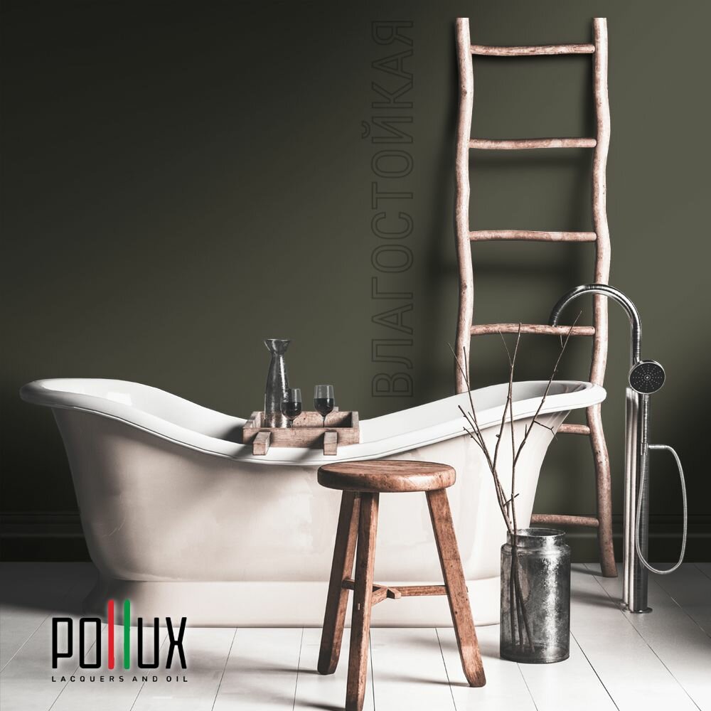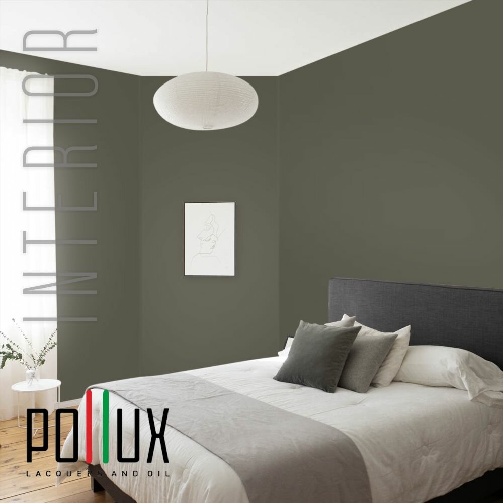 Краска моющаяся интерьерная для стен и потолков, Pollux INTERIOR без запаха, быстросохнущая, акриловая, матовое покрытие, цвет NCS S 3030-G80Y, 1л.
