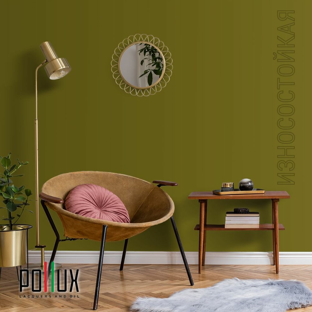 Краска моющаяся интерьерная для стен и потолков, Pollux INTERIOR без запаха, быстросохнущая, акриловая, матовое покрытие, цвет NCS S 3030-G80Y, 1л.