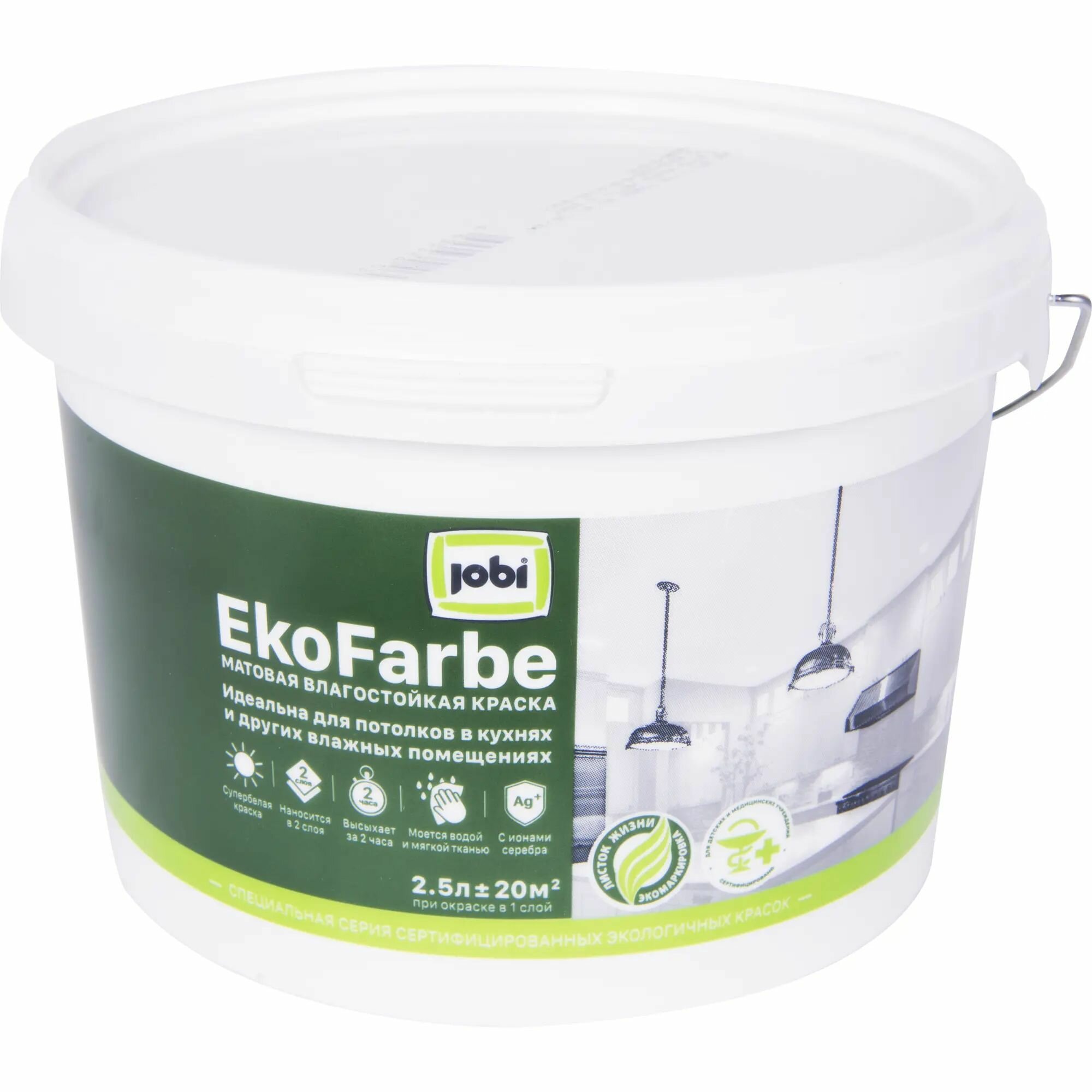 Краска для кухни и ванной Jobi Ekofarbe цвет белый 2.5 л интересное: