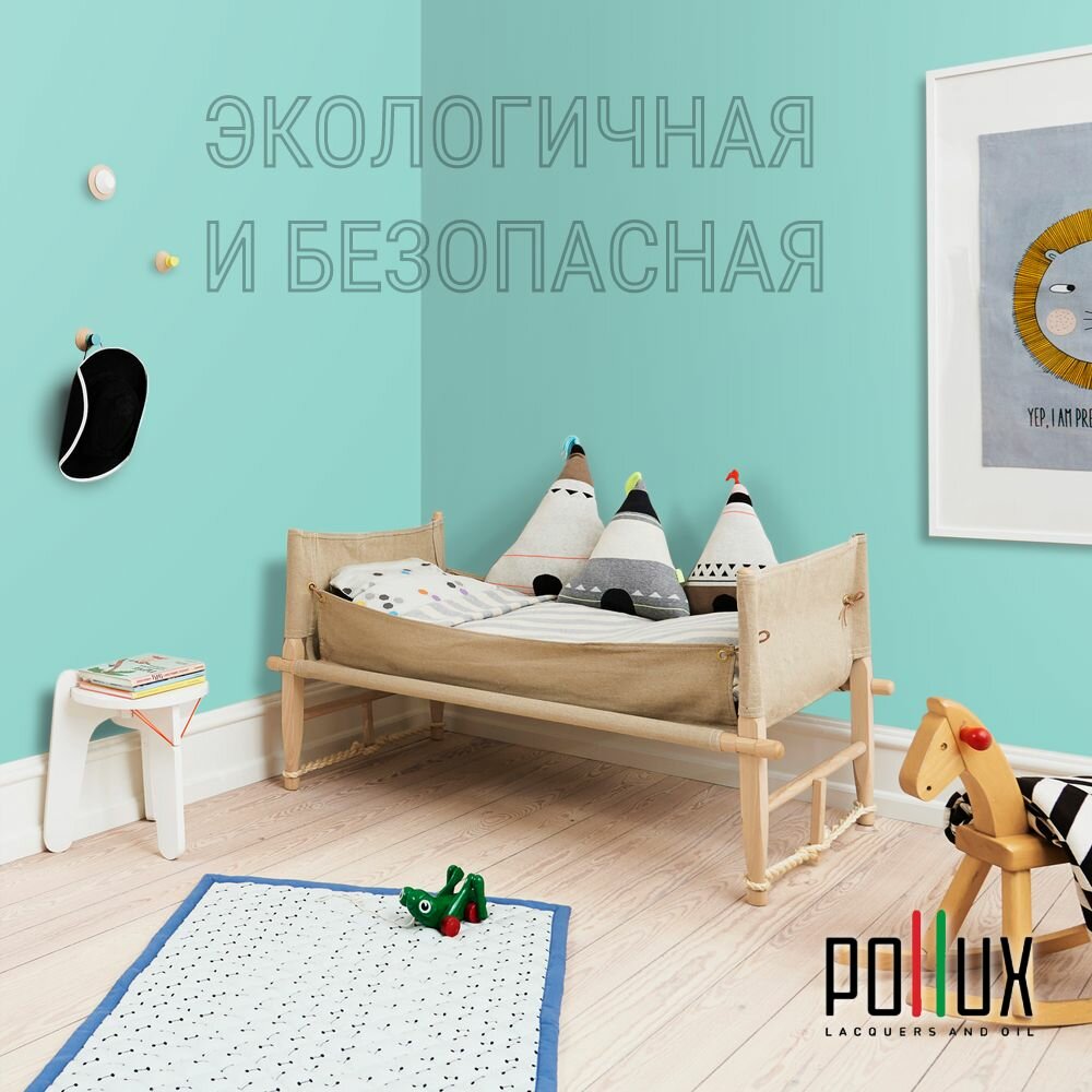 Краска моющаяся интерьерная для стен и потолков, Pollux INTERIOR без запаха, быстросохнущая, акриловая, матовое покрытие, цвет NCS S 0530-B60G, 1л.