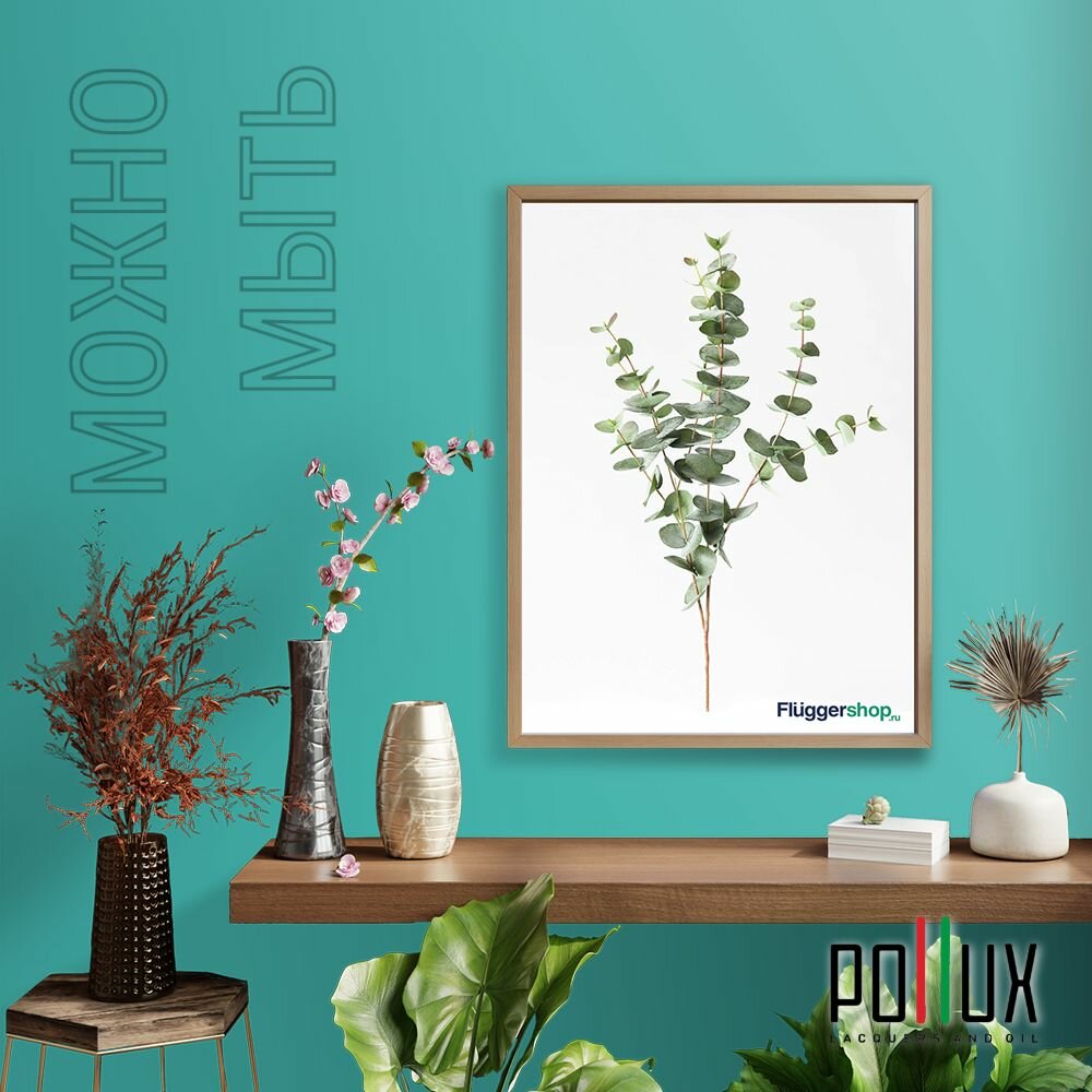 Краска моющаяся интерьерная для стен и потолков, Pollux INTERIOR без запаха, быстросохнущая, акриловая, матовое покрытие, цвет NCS S 6035-B60G, 1л.