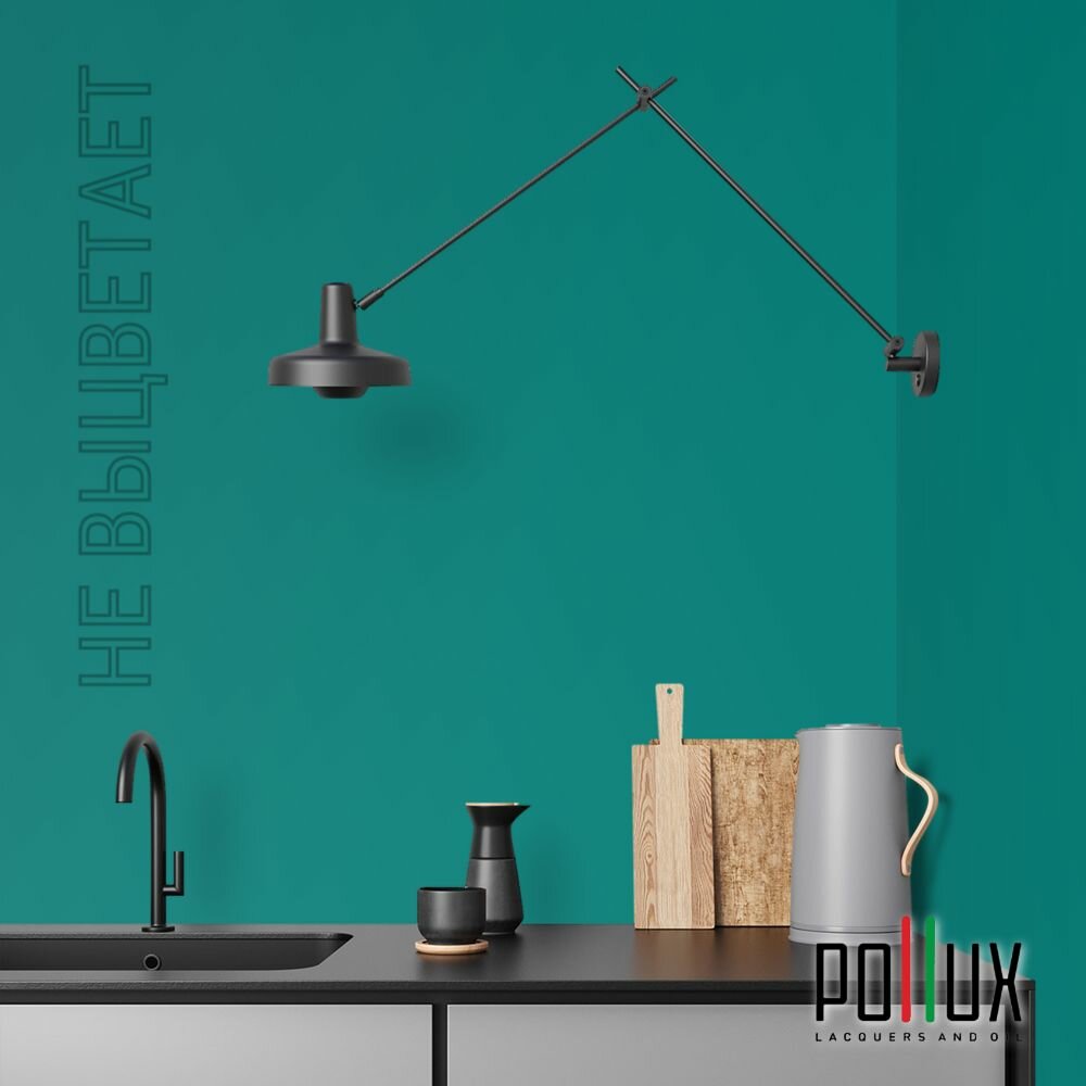 Краска моющаяся интерьерная для стен и потолков, Pollux INTERIOR без запаха, быстросохнущая, акриловая, матовое покрытие, цвет NCS S 4050-B60G, 1л.
