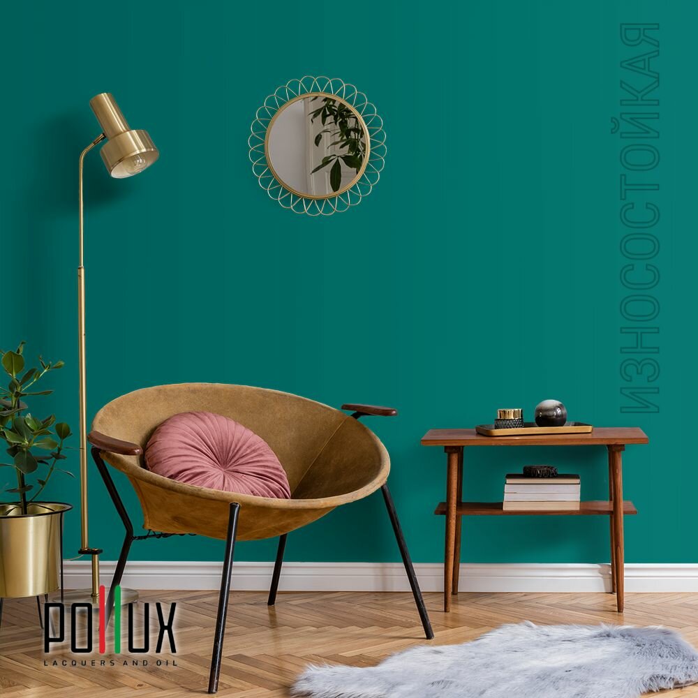 Краска моющаяся интерьерная для стен и потолков, Pollux INTERIOR без запаха, быстросохнущая, акриловая, матовое покрытие, цвет NCS S 4050-B60G, 1л.