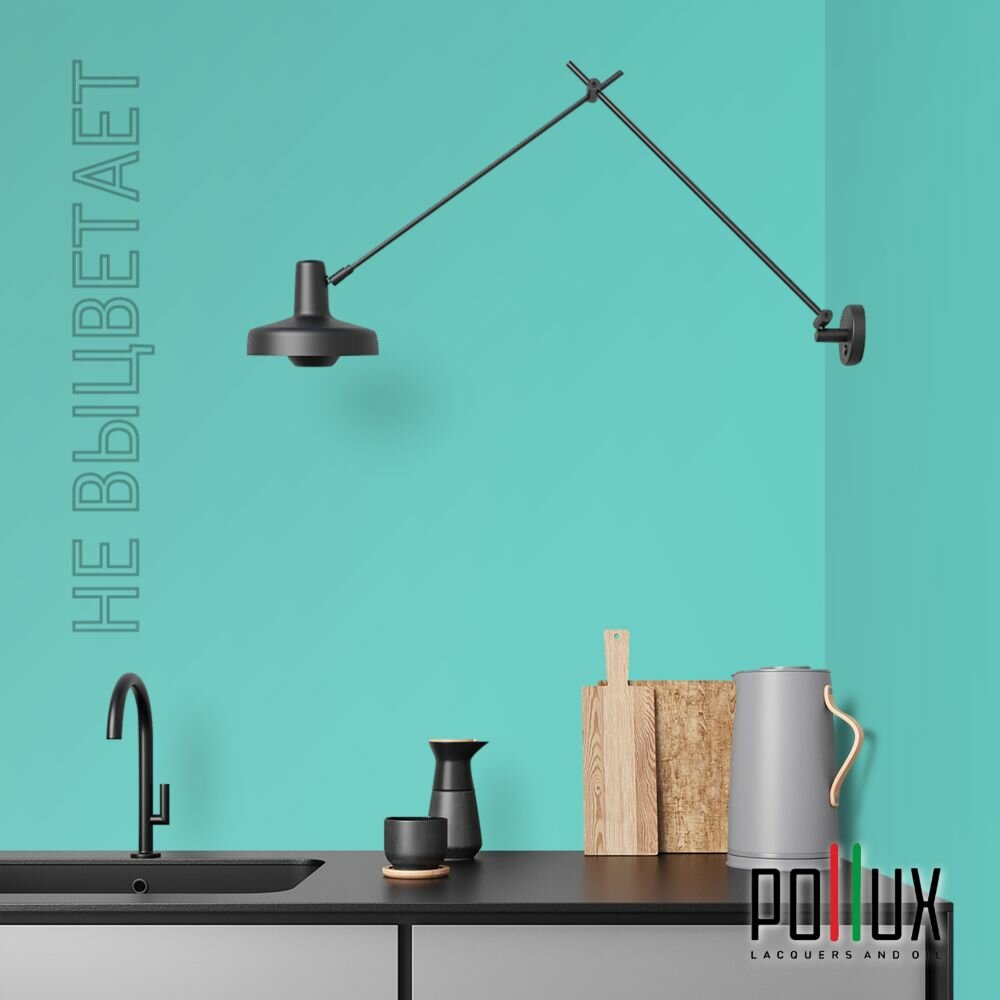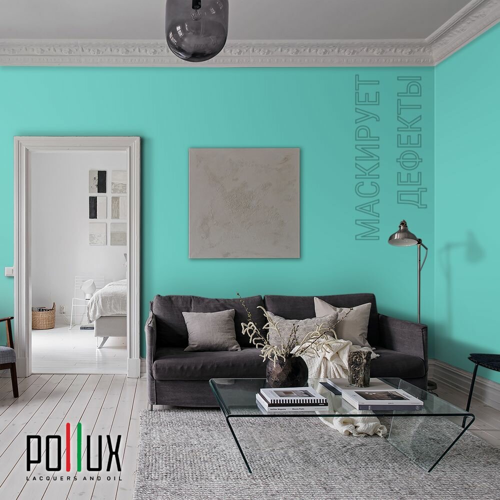 Краска моющаяся интерьерная для стен и потолков, Pollux INTERIOR без запаха, быстросохнущая, акриловая, матовое покрытие, цвет NCS S 1030-B60G, 1л.