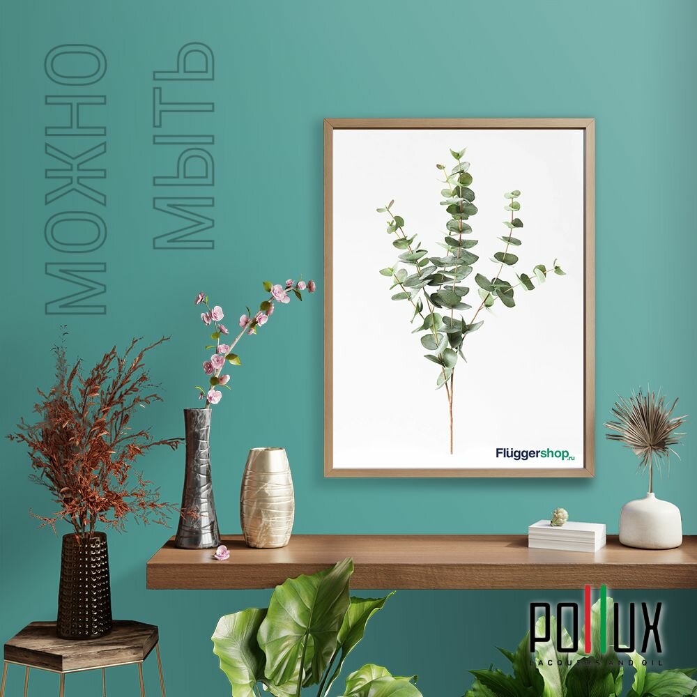 Краска моющаяся интерьерная для стен и потолков, Pollux INTERIOR без запаха, быстросохнущая, акриловая, матовое покрытие, цвет NCS S 1030-B60G, 1л.