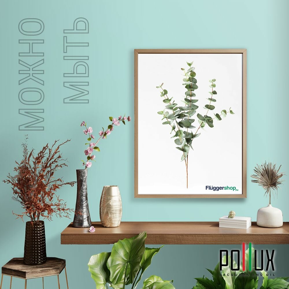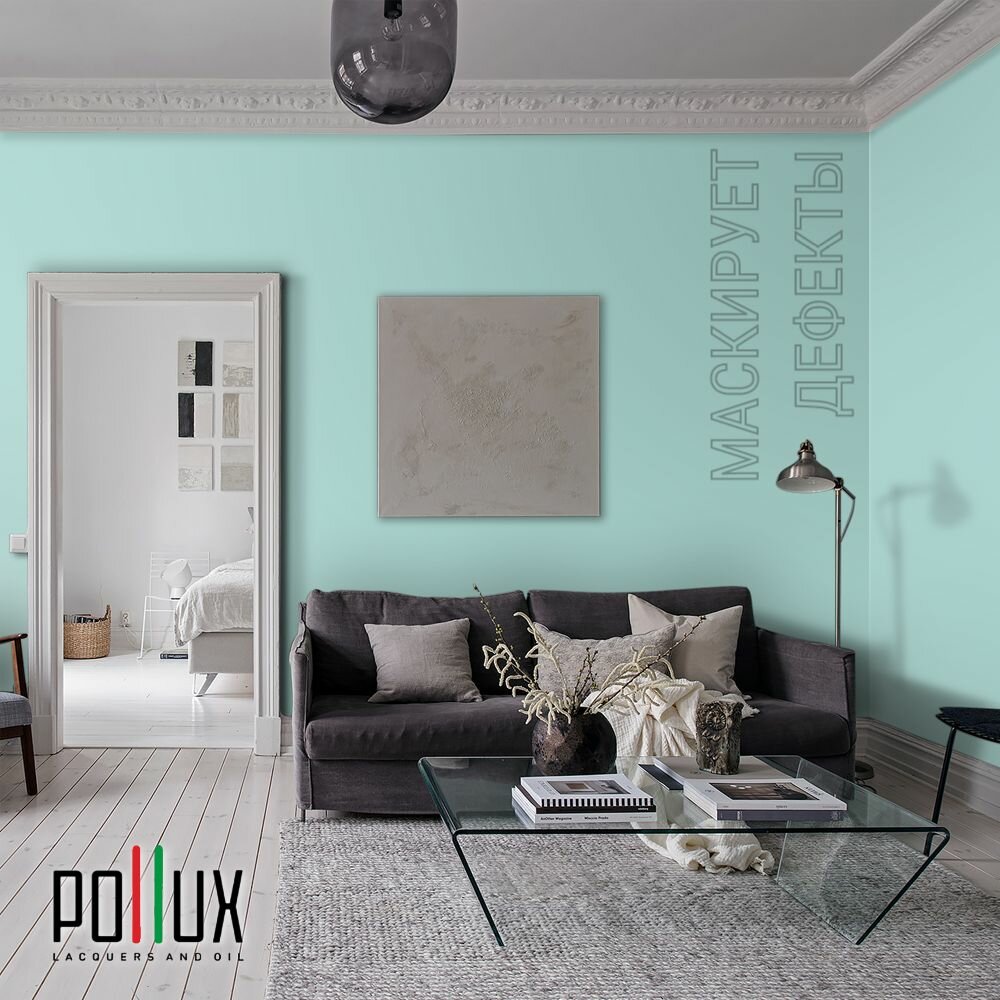 Краска моющаяся интерьерная для стен и потолков, Pollux INTERIOR без запаха, быстросохнущая, акриловая, матовое покрытие, цвет NCS S 1030-B60G, 1л.
